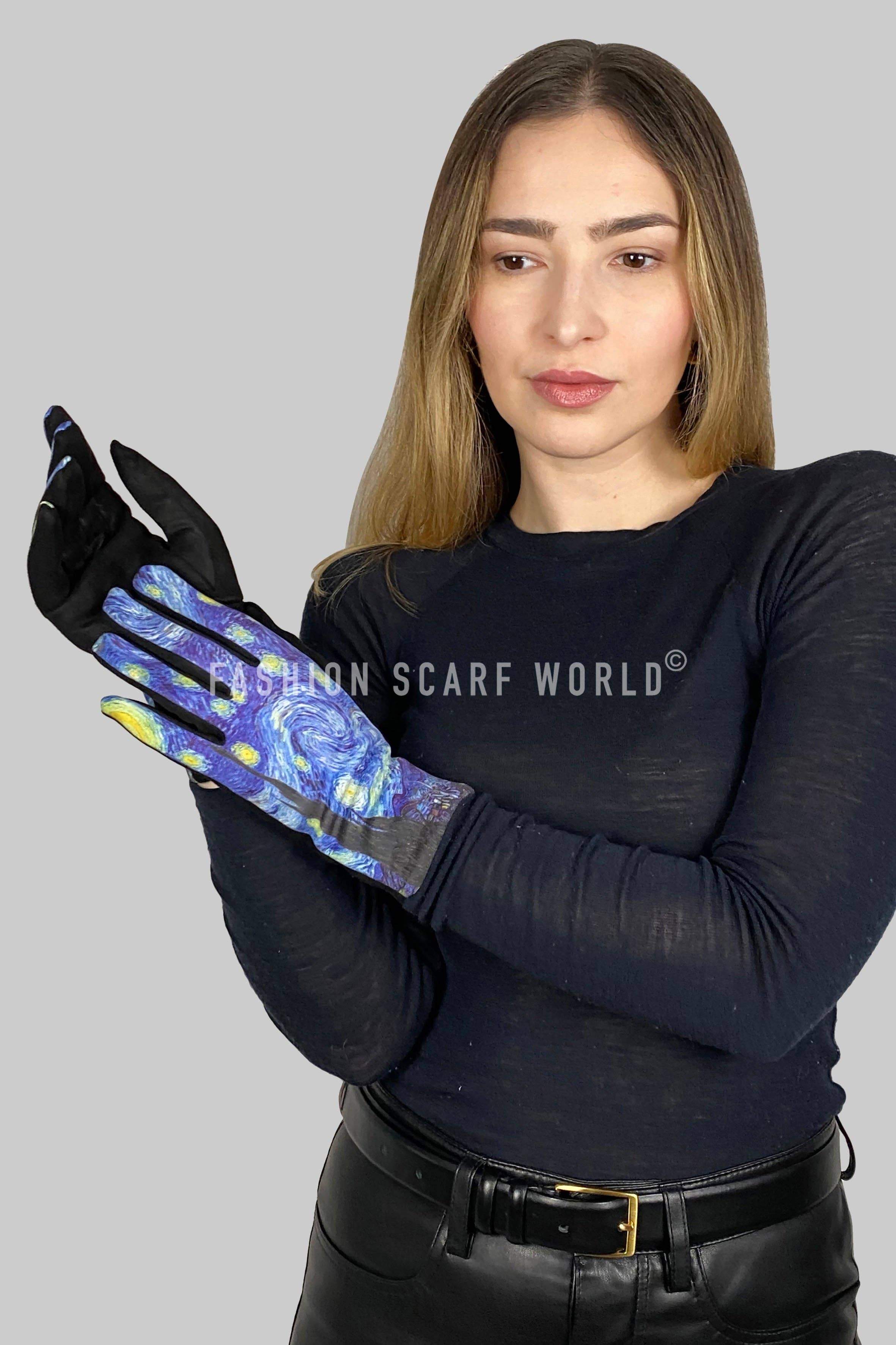 Size: One Size Material: 95% Polyester 5% Spandex Crafted from a soft, suede-like material, these gloves offer a comfortable and stylish option for the colder weather. The Irises inspired print captures the essence of Van Gogh's art, bringing his work to life on your fingertips. Featuring touchscreen technology, these gloves not only keep your hands warm during chilly days, but also allow you to use your devices with ease. ♥ Fashion Scarf World-Endless Styles for Endless Fashion Possibilities Art, Artist, Museum, Gloves, Touchscreen, Ladies Gloves, Beautiful, Luxury, Luxurious, Gift, Gifts, Women's, Winter, Fashion, New, Modern, Fun, Van Gogh, Picasso, Abstract, Design