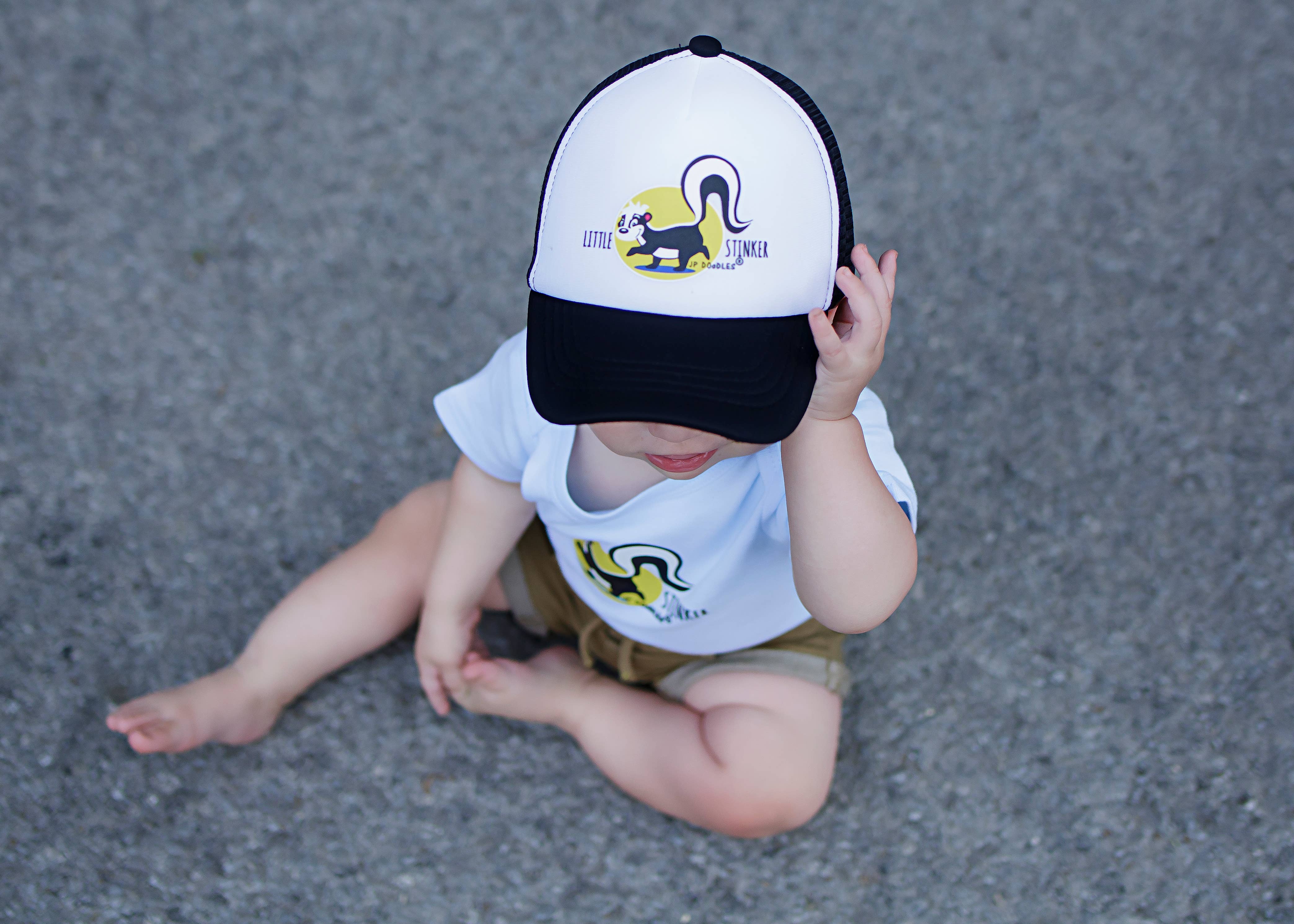 • Kids Baseball Cap with Velcro Strap Closure. Allowing for Easy Adjustment. • Lightweight White Poly-Foam Front and 5 Panel Breathable Mesh Back. • Quality Cotton Sweatband for a Comfortable Fit. • JP Doodles Original Design. Making it a one of a kind gift. • Small Embroidered JP Doodles Logo on Back. • Offered in various sizes in order to find the perfect fit for infants, toddlers, kids and adults. • Excellent sun protection helps in blocking the sun's UV rays from sensitive eyes and skin while playing outside.