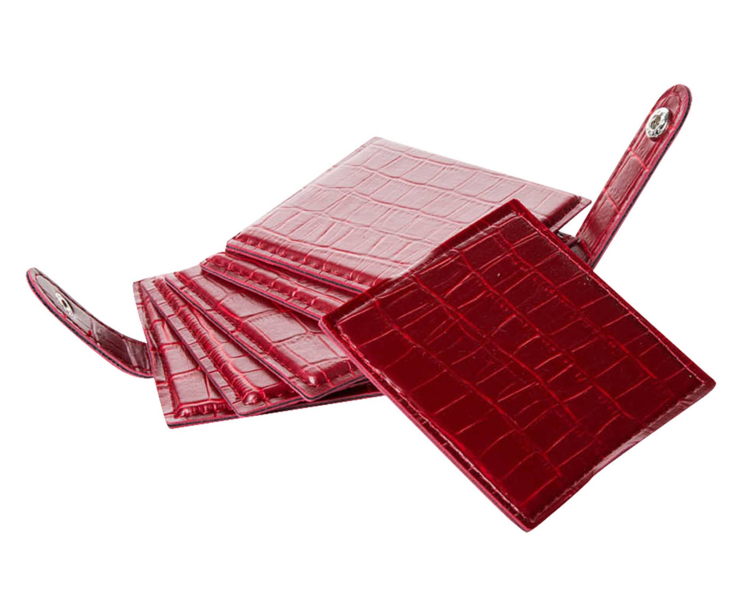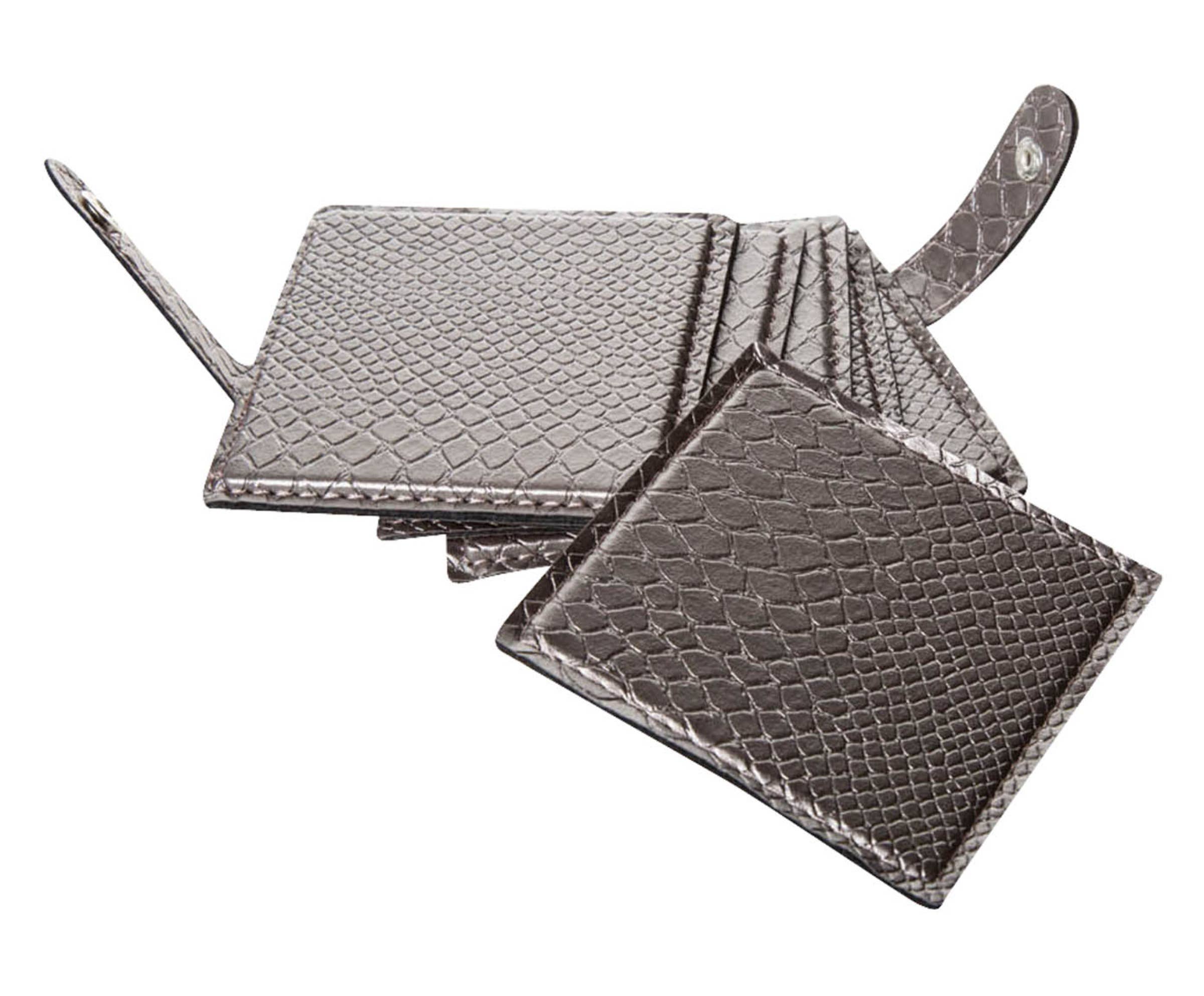 Set of 6 crocodile black faux leather glass coasters