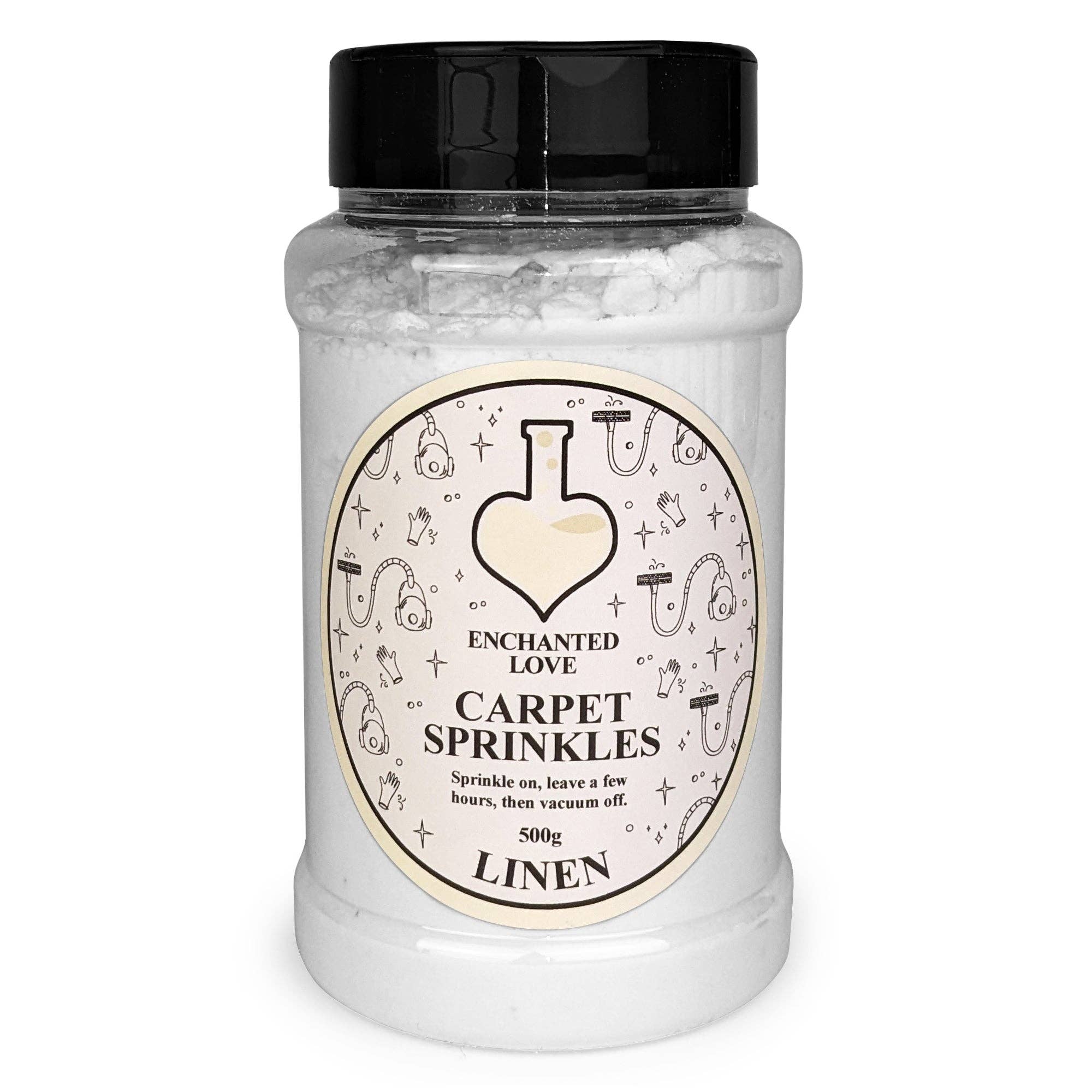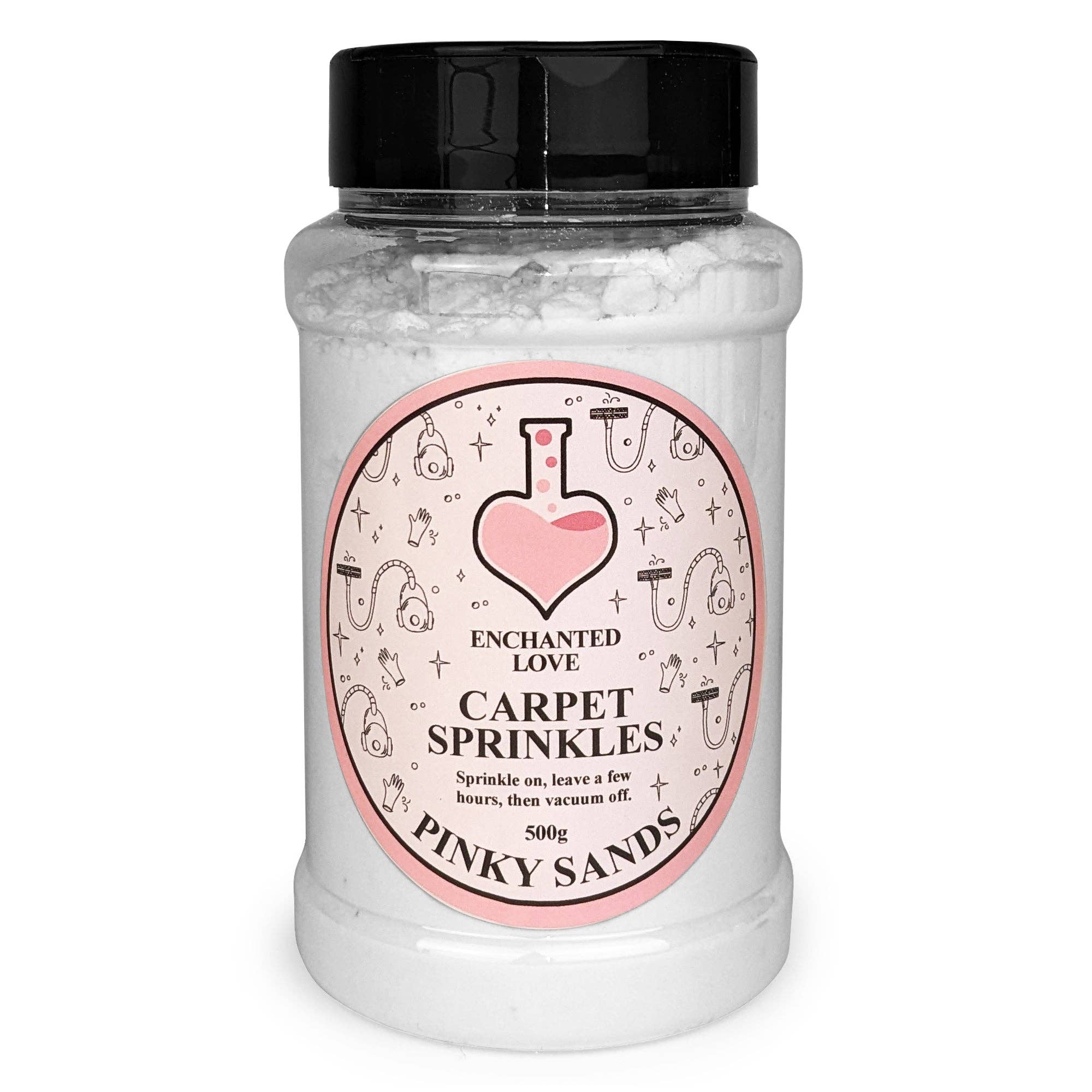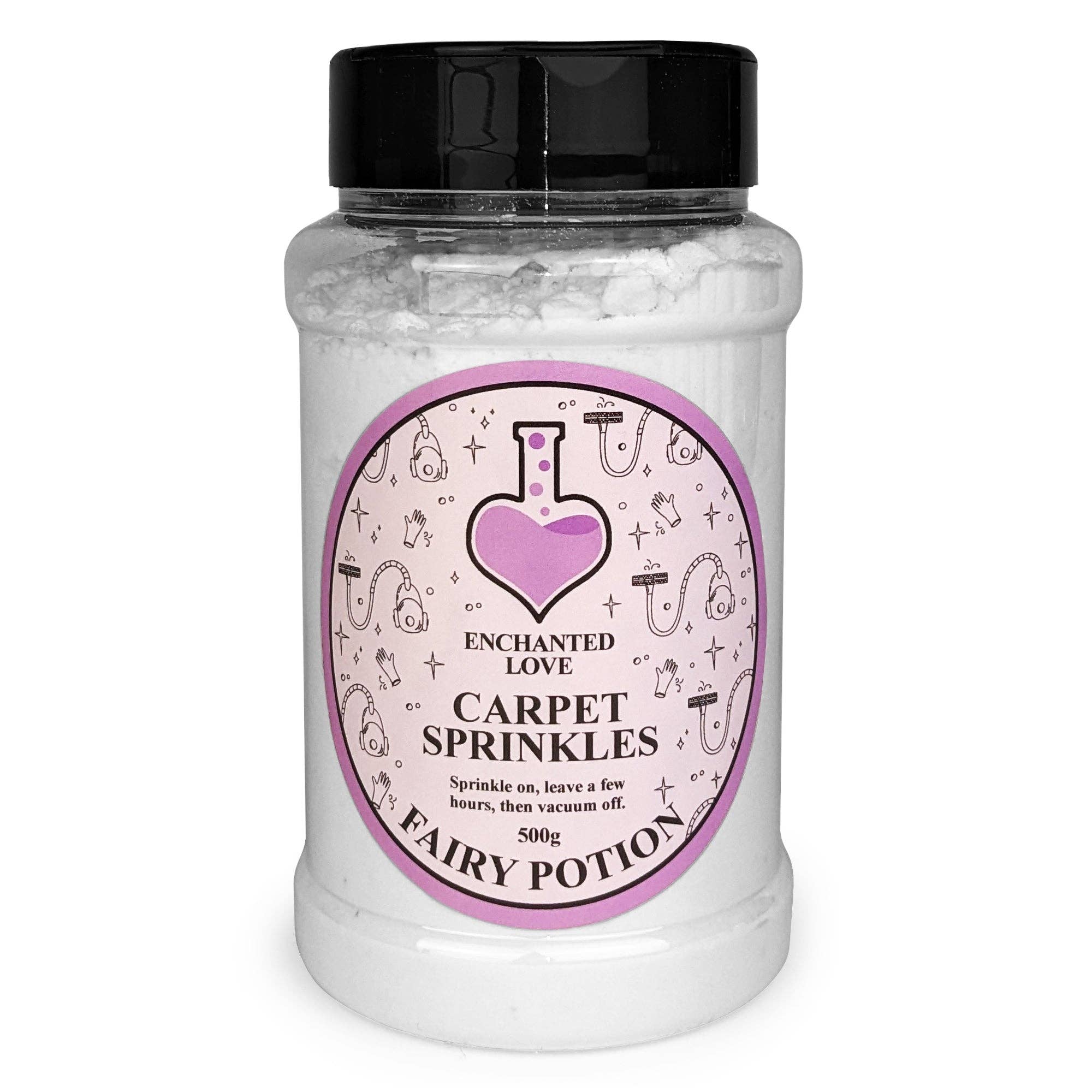 A fresh, floral fragrance with top notes of lime, pineapple, parma violets, lavender and gardenia. With a heart of rose, iris, lily and heliotrope, on a base of orange blossom, precious wood & amber. Carpet sprinkles eliminate lingering odours that get trapped in carpets leaving your room smelling fresh and clean. Simply sprinkle on, leave for a few hours, then vacuum off. Your room will be left smelling beautifully of your favourite fragrance. * 500g carpet fresh powder * Easy sprinkle lid with two settings * Long lasting, powerful fragrance * Packaged in recyclable tubs * Handmade in the UK * Cruelty free Enchanted Love is an exciting new brand with a bold & fun range of home fragrances.