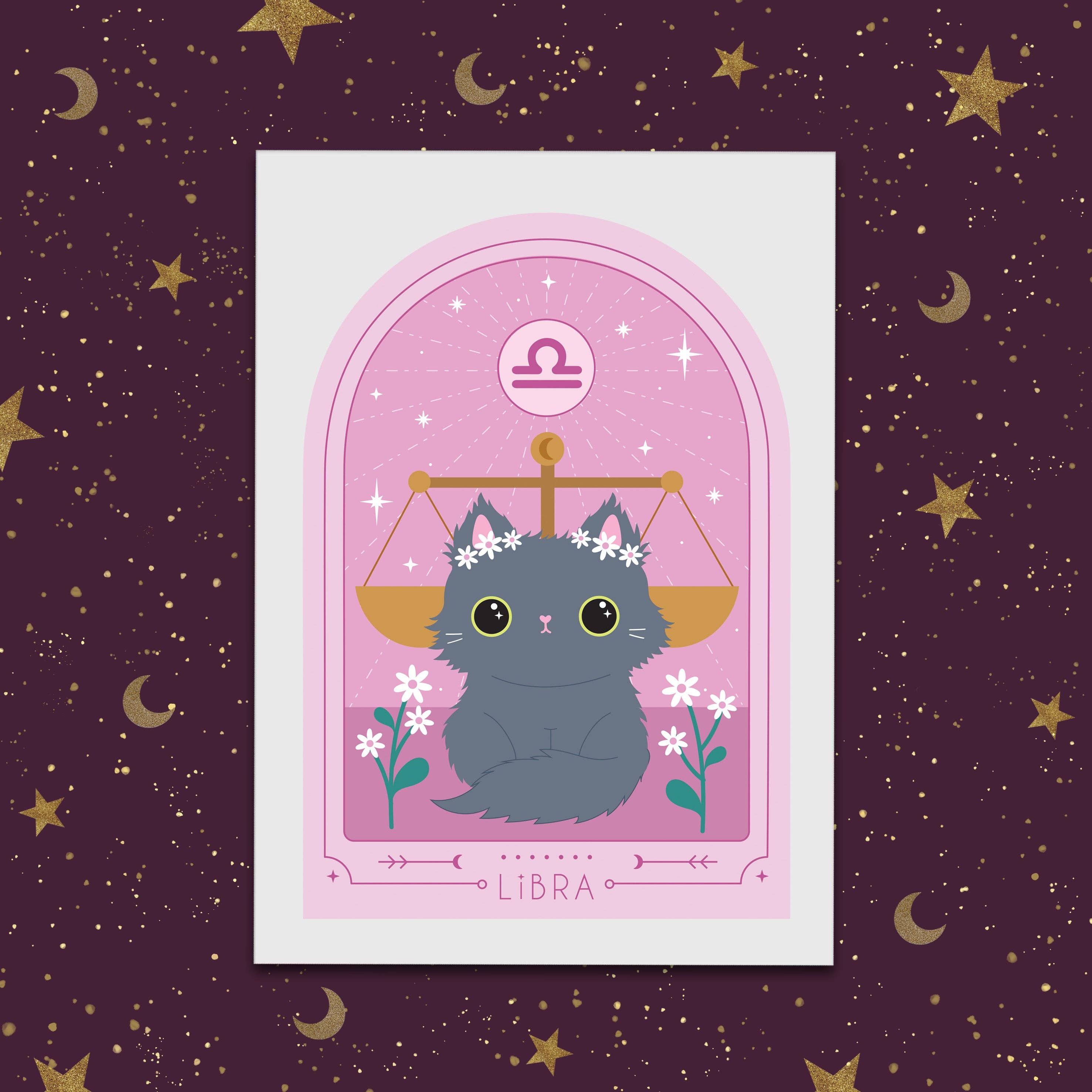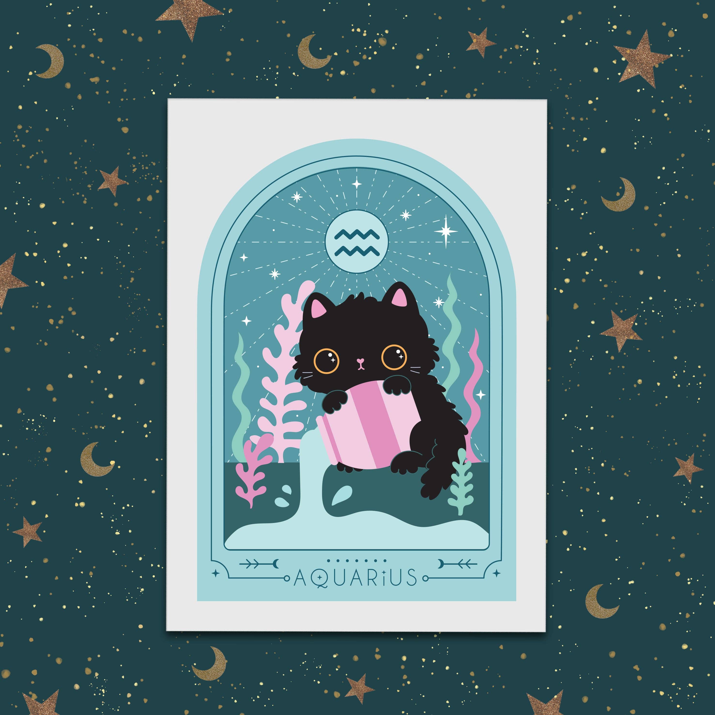 Scorpio Zodiac Kitty Art print cute star sign print - Astrology art
