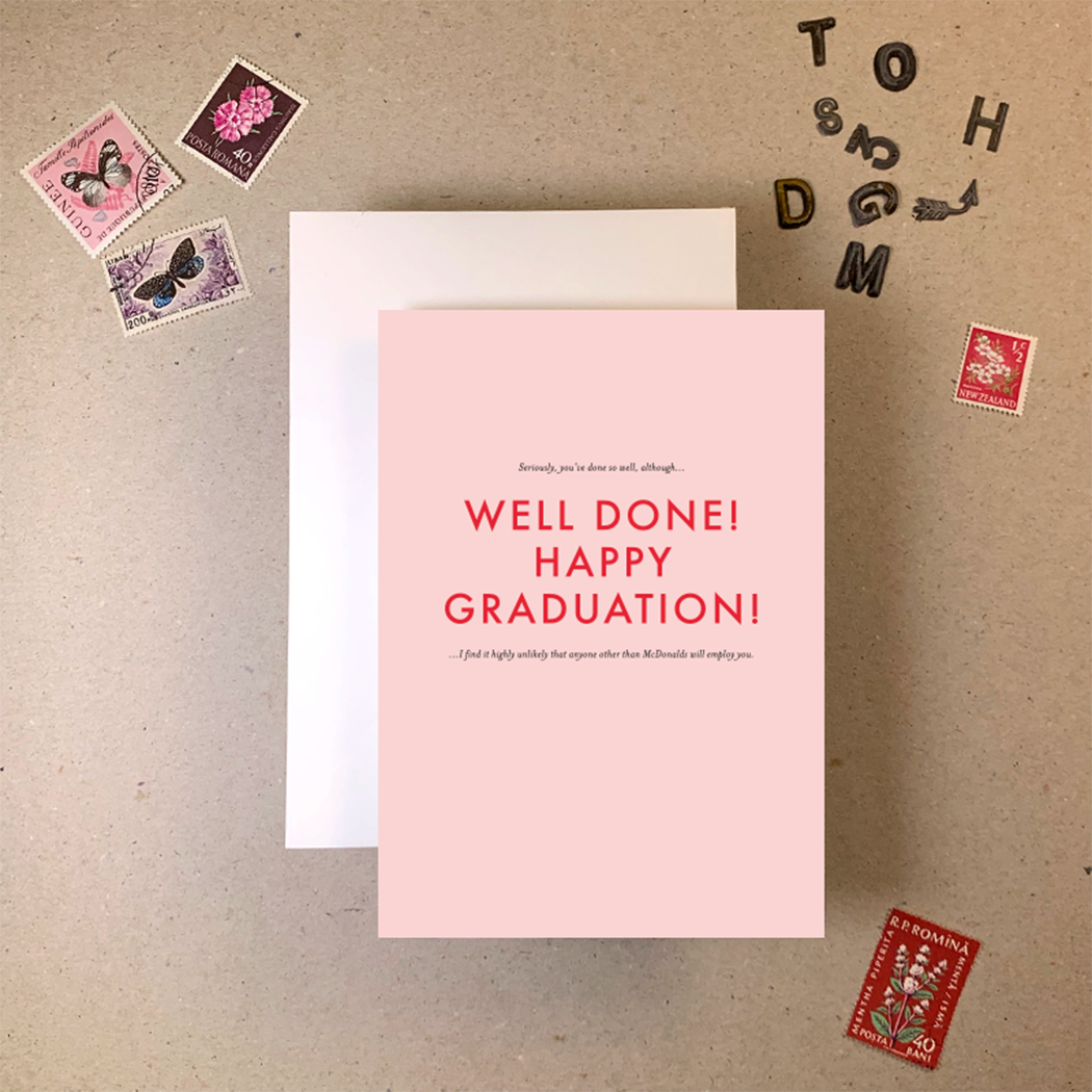 YOU ARE TOTALLY AWESOME! …biggest overstatement in the history of overstatements…if I googled ‘decidedly average’ you would be all over the first page. The devil really is in the detail, at first glance, it’s a lovely card, but a closer look reveals some humorous and seriously sassy small print! Letterpress printed on 350gsm fsc paper with a matching envelope.