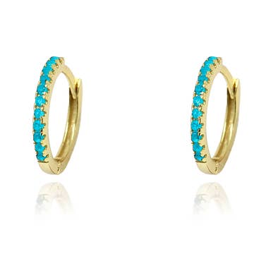 Tiny and full of sparkle, these stone huggies are so much fun! These are our best-selling huggie style of earrings, and an easy item to stock and sell quickly. Earrings are gold-plated and measure approx. 12mm. Stones are man-made.