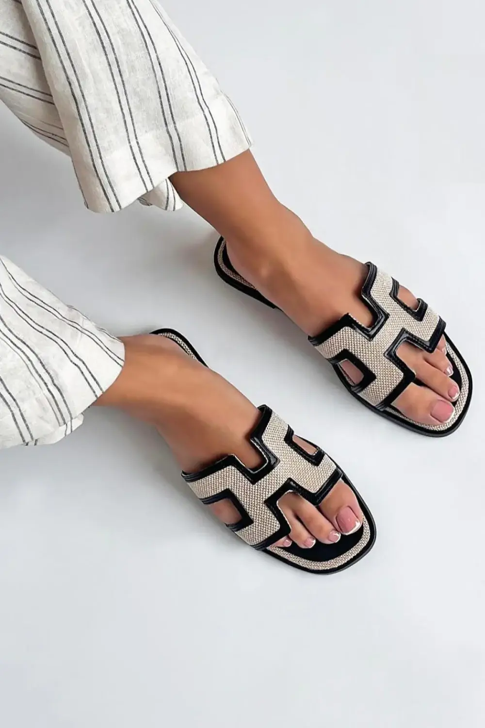 Women’s flat designer Slider sandals. • Colour: Tan • Heel Height: Approx 0.5 inches • Packaging: Box • Fastening: Slip On • Upper Material: Synthetic • Lining Material: Synthetic • Sole: Rubber • Range: SS2024
