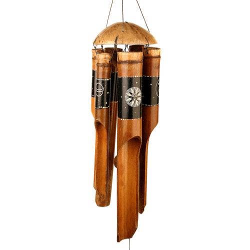 Large 50cm bamboo windchime with burn flower design.