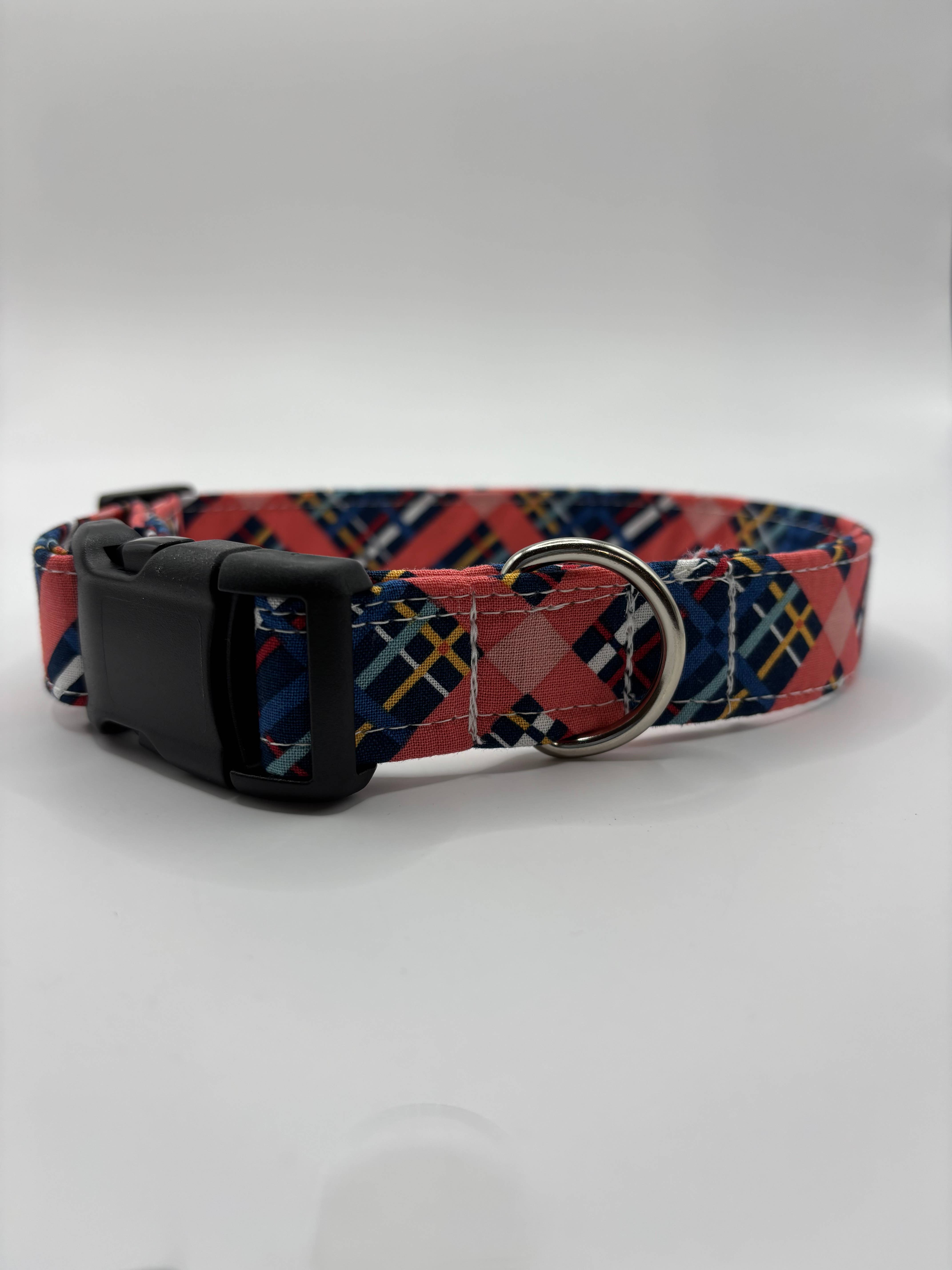 Handmade 1 inch adjustable dog collar made with heavy duty webbing & high quality ribbon. Size chart in pictures
