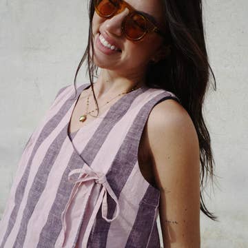 100% Cotton Light weight. Hand screen printed. New easy-styling top created for our statement textiles Slightly cropped length. Length is 20" from shoulder. Made fair trade in India by one of our longstanding production partners This textile has been printed by hand using traditional techniques. We celebrate the uniqueness, integrity, and character of our handmade pieces. Please allow for variations in pattern and color including shifts in alignment, stray ink, and other nuances that may be different than pictured.