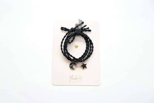 Pretty flower hair ties, with a contrasting metallic lilac flower in the centre.