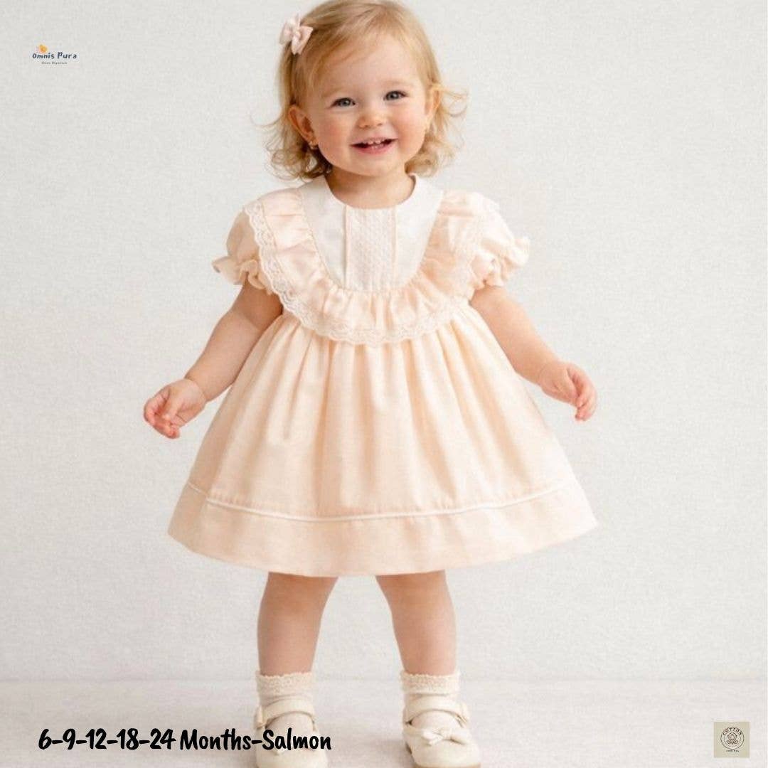 A classic christening dress or baptism gown for creating magical memories with your baby, designed to be kept as a family heirloom that can be passed down through the generations. The Christina dress has a traditional long skirt and the fine cotton will fall gracefully over your arm, as you carry your baby. The intricate off-white rose embroidery and smocking meets a classic peter pan collar. The delicate puffed cap sleeves create an enduring romantic silhouette. Made from 100% fine, breathable and extremely luxurious cotton, this dress has fabric covered buttons that fasten at the back and a matching nappy cover. It is fully lined, also in natural cotton. ~ 100% fine cotton ~ Machine washable at 30°C ~ Traditional hand smocking and embroidery