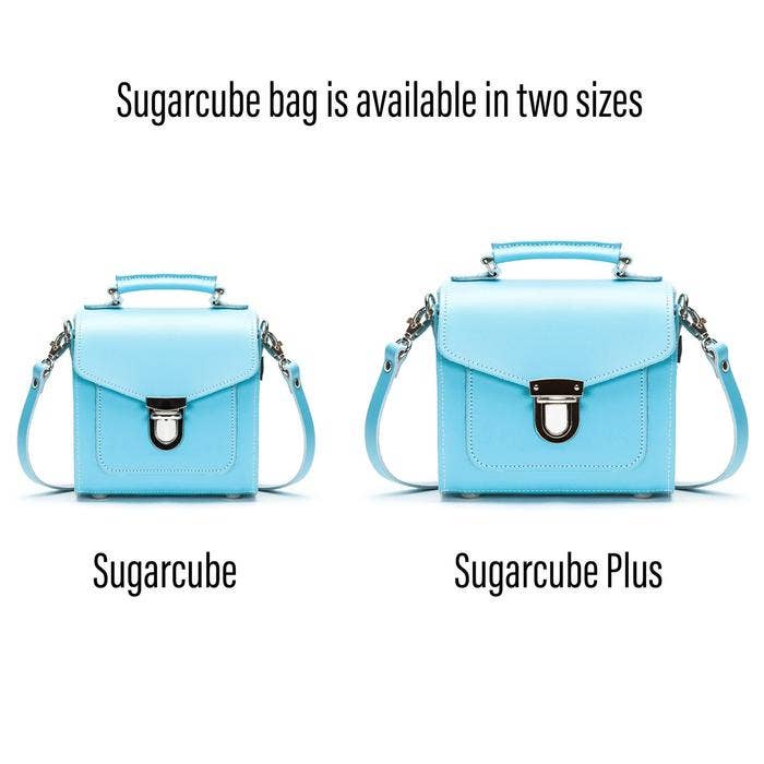 This classic leather sugarcube bag is carefully handmade out of real leather in England. This cute collection of colourful sugarcube bags will fit any occasion and complement your look. Trendy shape with a push lock closing and little handle makes it a perfect bag to complement your favourite outfit. The strap is adjustable and detachable allowing the bag to be worn on your shoulder, cross body or carried as a clutch. Size :- 19 X 18 X10 CM