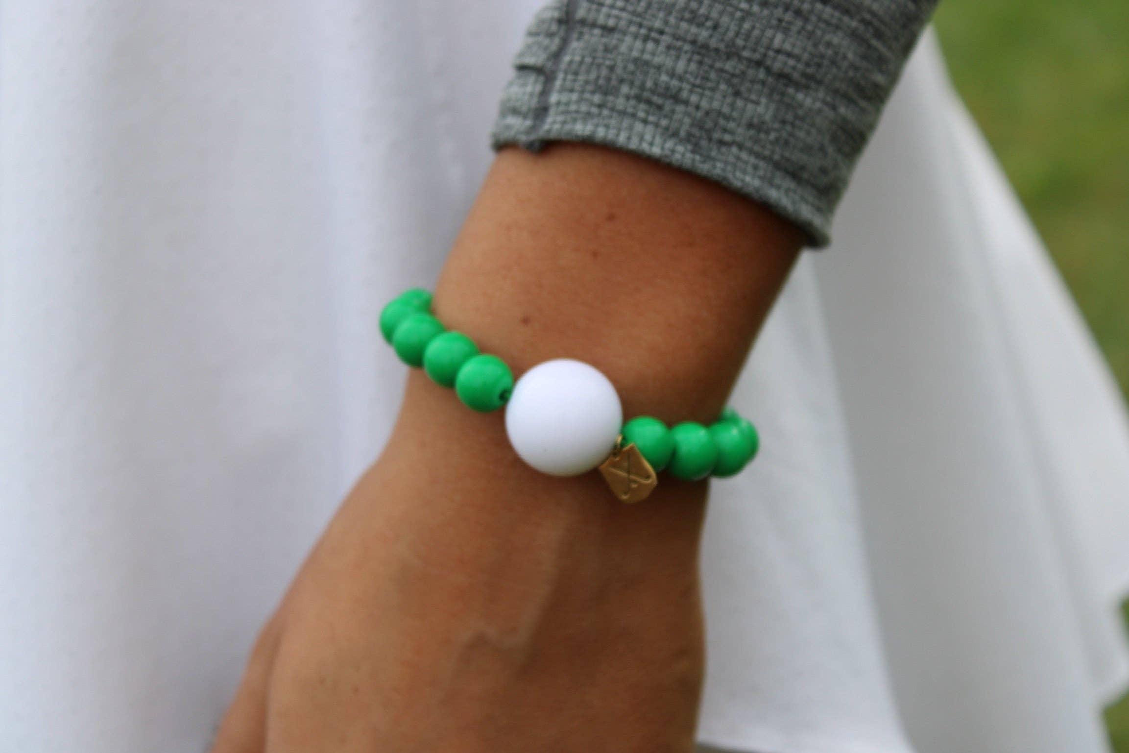 Introducing the JUST BLUE Golf Stroke Counter Bracelet – your chic companion on the golf course. Never forget your score again with this stylish piece that seamlessly combines functionality and fashion. Crafted with meticulous attention to detail, the bracelet features a stunning Shiny White Acrylic bead at its center, surrounded by ten beads for ten strokes of Shiny Blue Acrylic, each meticulously chosen for a touch of elegance. The high-quality and comfortable elastic in matching blue ensures a seamless fit, while the exclusive logo charm adds a touch of sophistication. Handmade in the United States, this bracelet is not just an accessory; it's a statement of style and functionality.