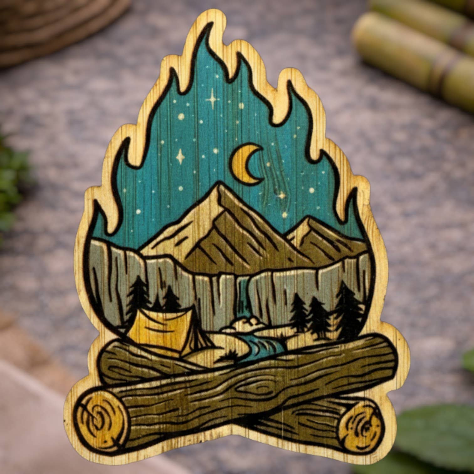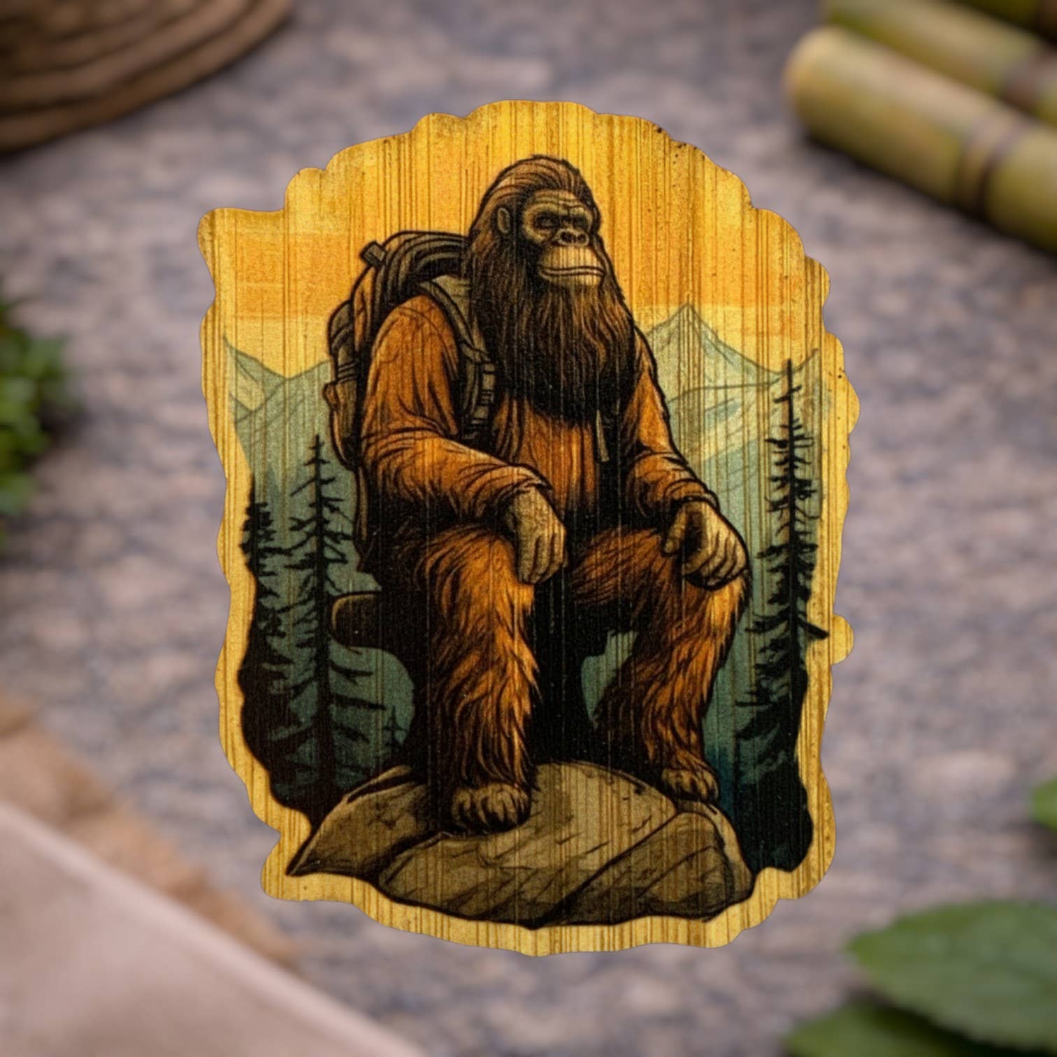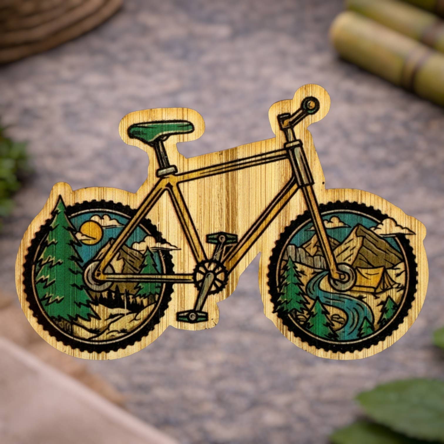 Our stickers are made with 100% sustainable bamboo. They are eco-friendly, fade and weather resistant, backed with a 3m water resistant adhesive, and approx. 3x3in. Due to the nature of the product, colors and appearance may vary.