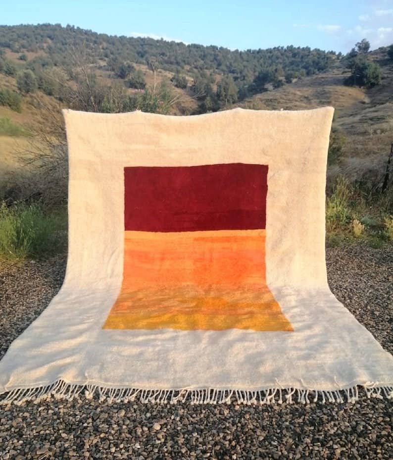 ONE OF A KIND PIECE OF ART / Only 1 piece available! In stock handmade Moroccan rug Delivered in 3-5 Business Days! 100% Secure Payment Why you'll love this handmade rug? * Totally elevates the look and feel of your interior and gives it instant soul. * Unbelievably soft and luscious beneath your feet . * Outstanding quality and hand weaving details, made to last a lifetime * Unique piece of art unlike any other in the world. * A rare piece with an ancestral know-how that increases in value. * Support more than 1000 artisans. Beni Ourain rugs are one of the many treasures of the Atlas mountains. Moroccan Beni ourain rugs are handmade, so each is different and unique, hand-knotted from un-dyed natural 100% authentic wool and often decorated with geometric symbols, diamond form inspired by the traditional Berber culture of the Atlas Tribes.