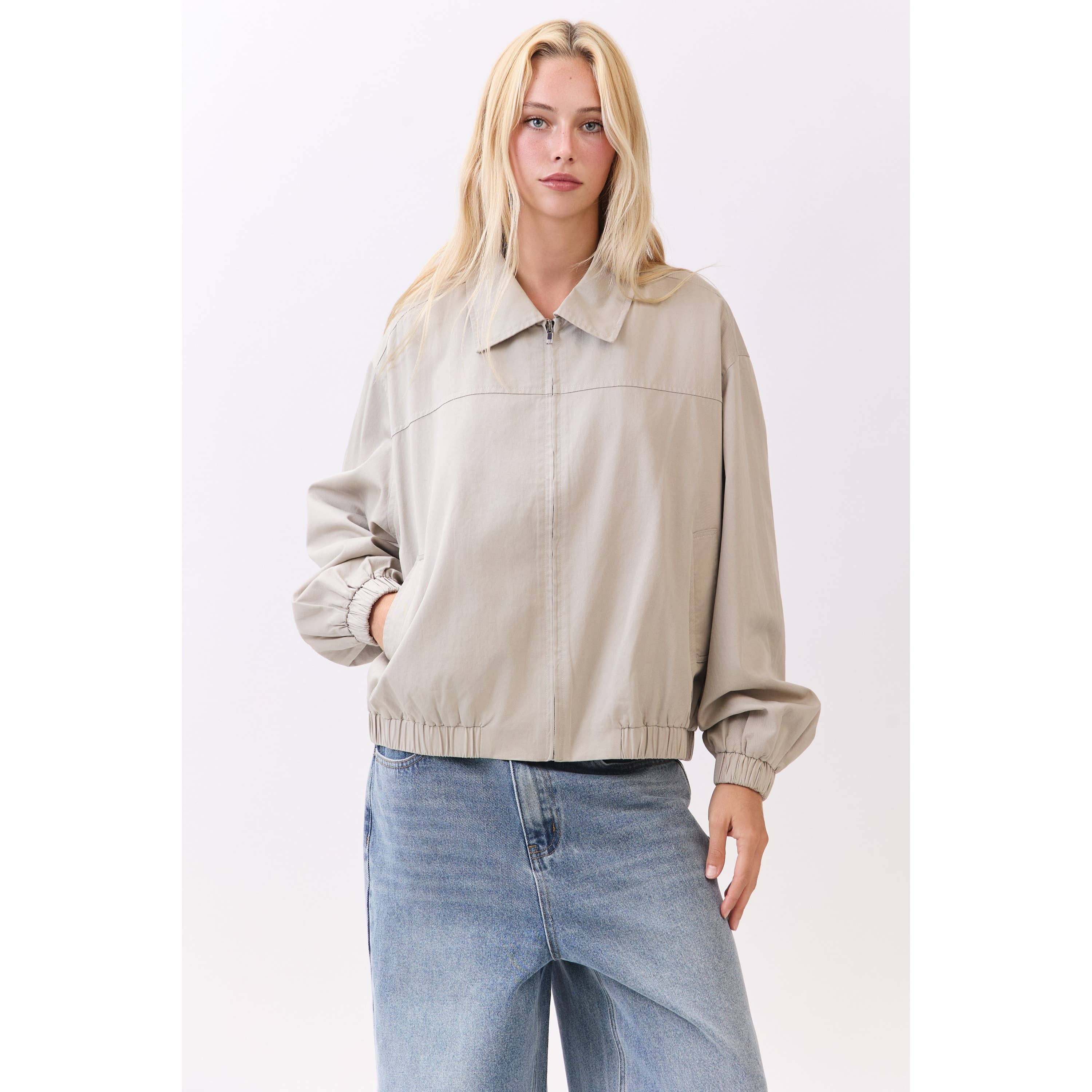* Style No.: MJ1191_1 Relaxed fit blazer. Jacket with lapel collar and long sleeves with shoulder pads. Single breasted front with two-button closure. Flap pockets at the front for a tailored finish. Model is wearing size S. (5'8") 3/2/1 (S/M/L)