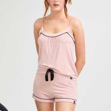 Add a touch of luxury to your nightwear. Two-piece satin set with rhinestone sparkles. Adjustable straps.