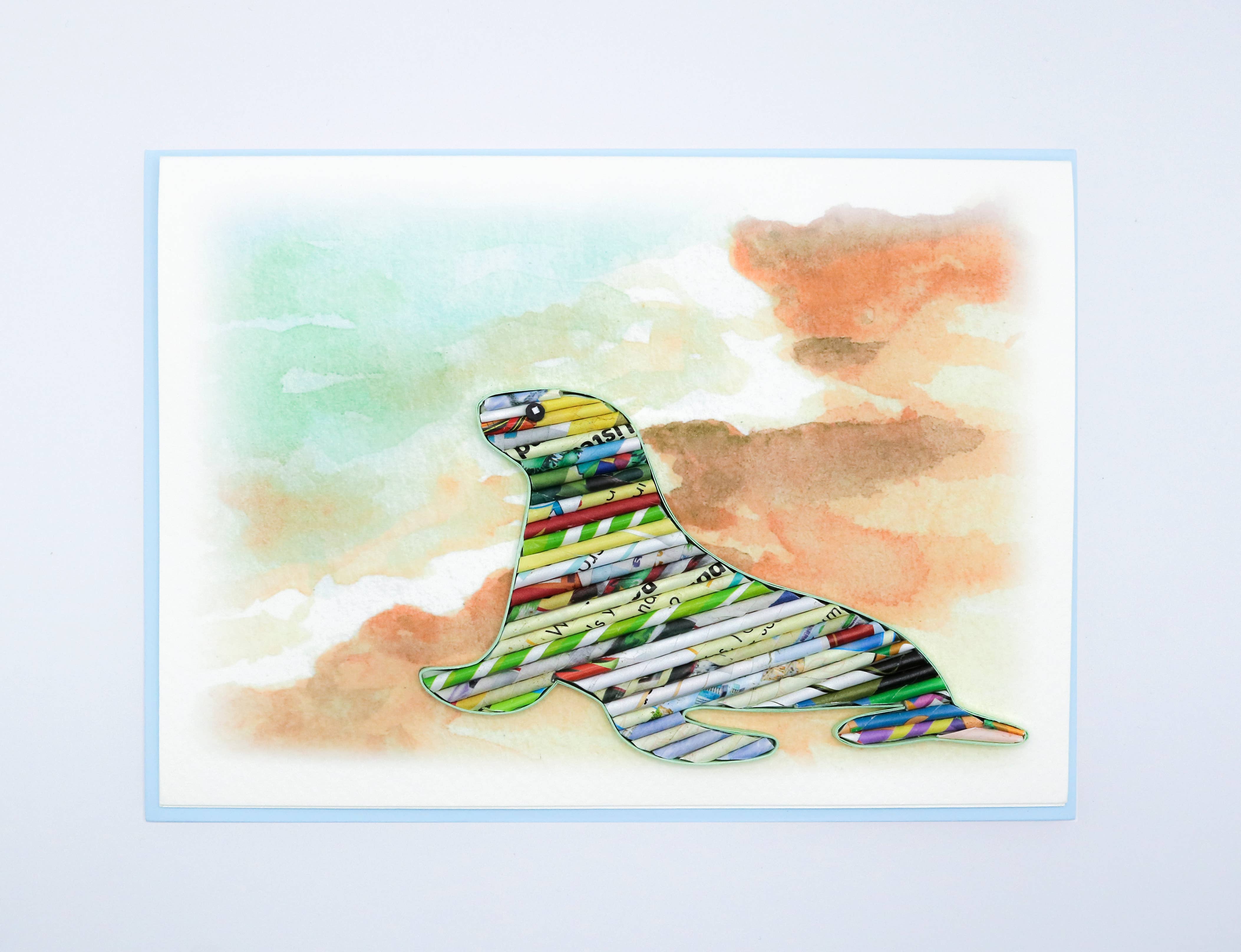 Rolled Paper Seahorse Card Handmade from Recycled Magazine