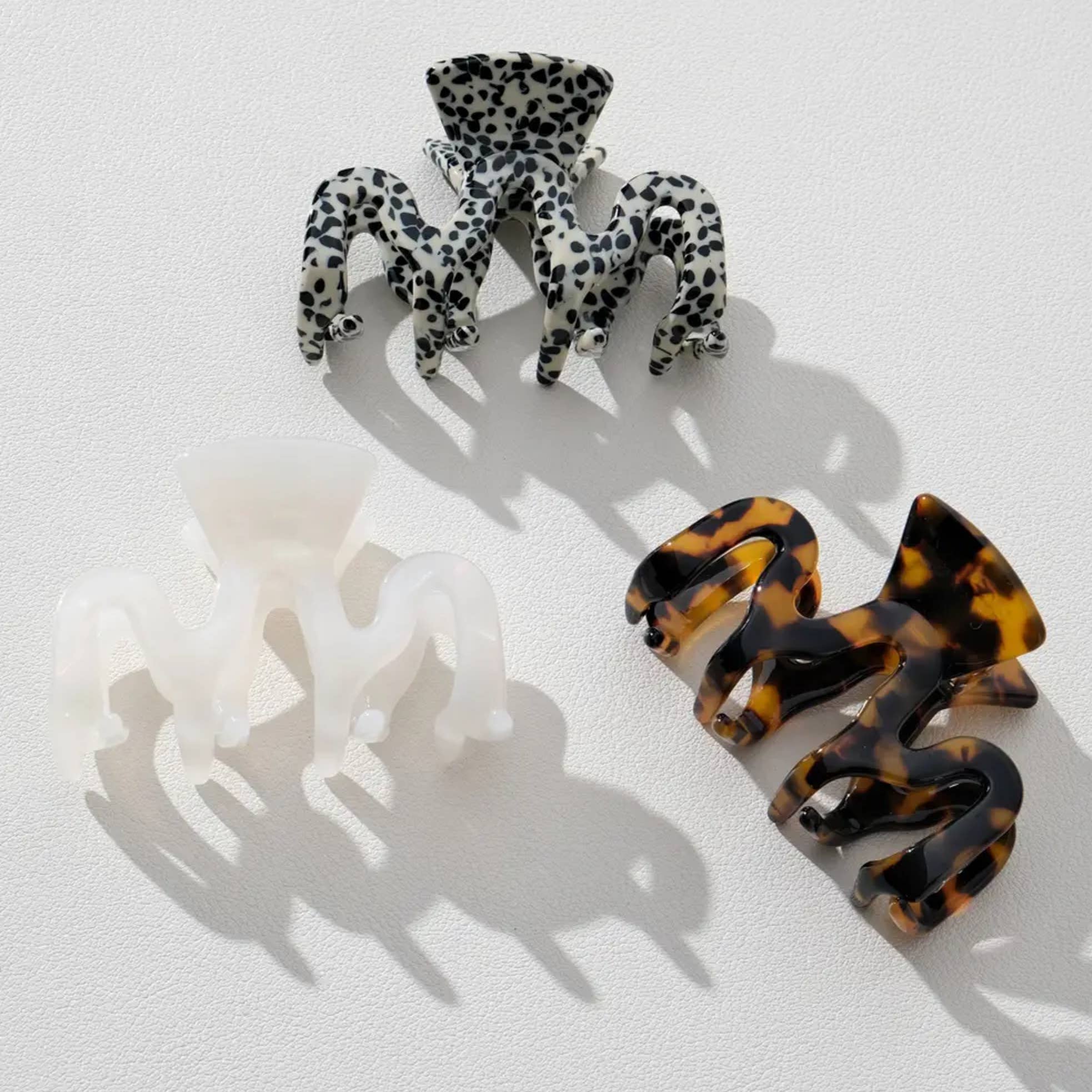 Lucie Core Mini (1.75 inch) Adorro Exclusive: designed in Chicago Featuring a hollow bubble design, this 1.75 inch claw clip will hold short/fine hair as well as half ups. Available in our core colors: tortoise, blonde tortoise, pearl, and speckle black/beige. Made with eco-friendly material that is both durable and comfortable. Assorted pack includes: 12 individual clips Measurements: 4.5cm x 4cm 8g Materials: Cellulose Acetate (eco-friendly) Cellulose Acetate is a synthetic fiber produced from plant derivatives such as wood pulp and cotton. CA is both durable and biodegradable. Compared to acrylic/PVC materials, our clips will last you longer. *Each claw will have slight variations of color and pattern due to how the cellulose plates are cut during our production. *Actual colors may vary slightly from what appears online due to lighting and differences in monitors.