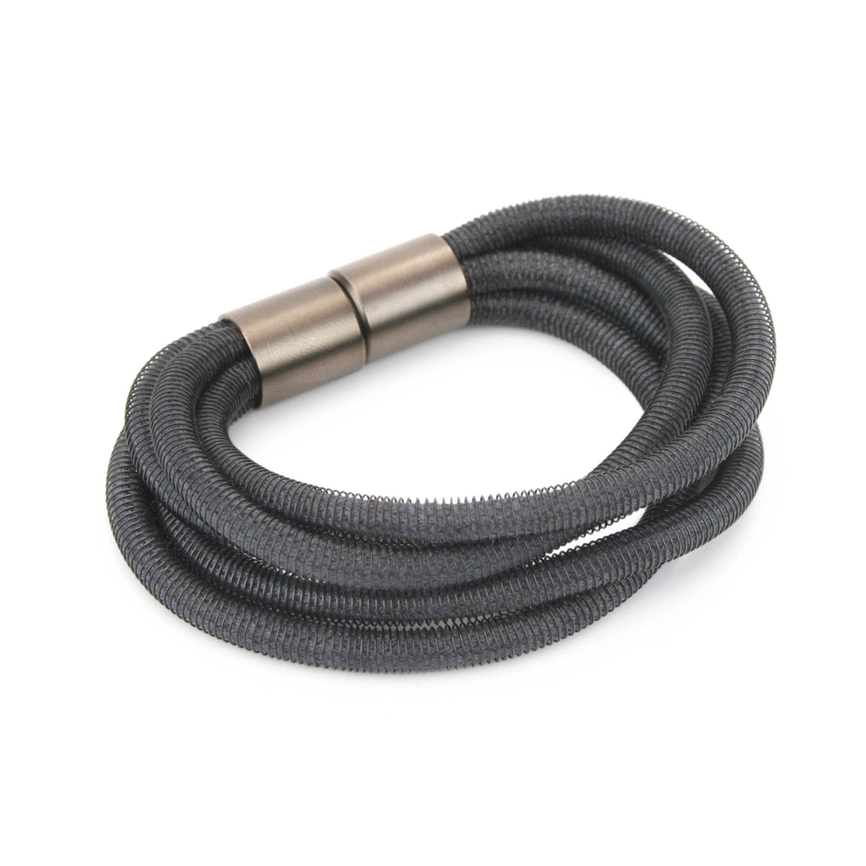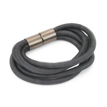 Each bangle is single but gives the illusion of three. Exclusive to us, this bangle also features a 100% American pewter charm and is expandable from 7 inches - 8 inches making it one size fits most.