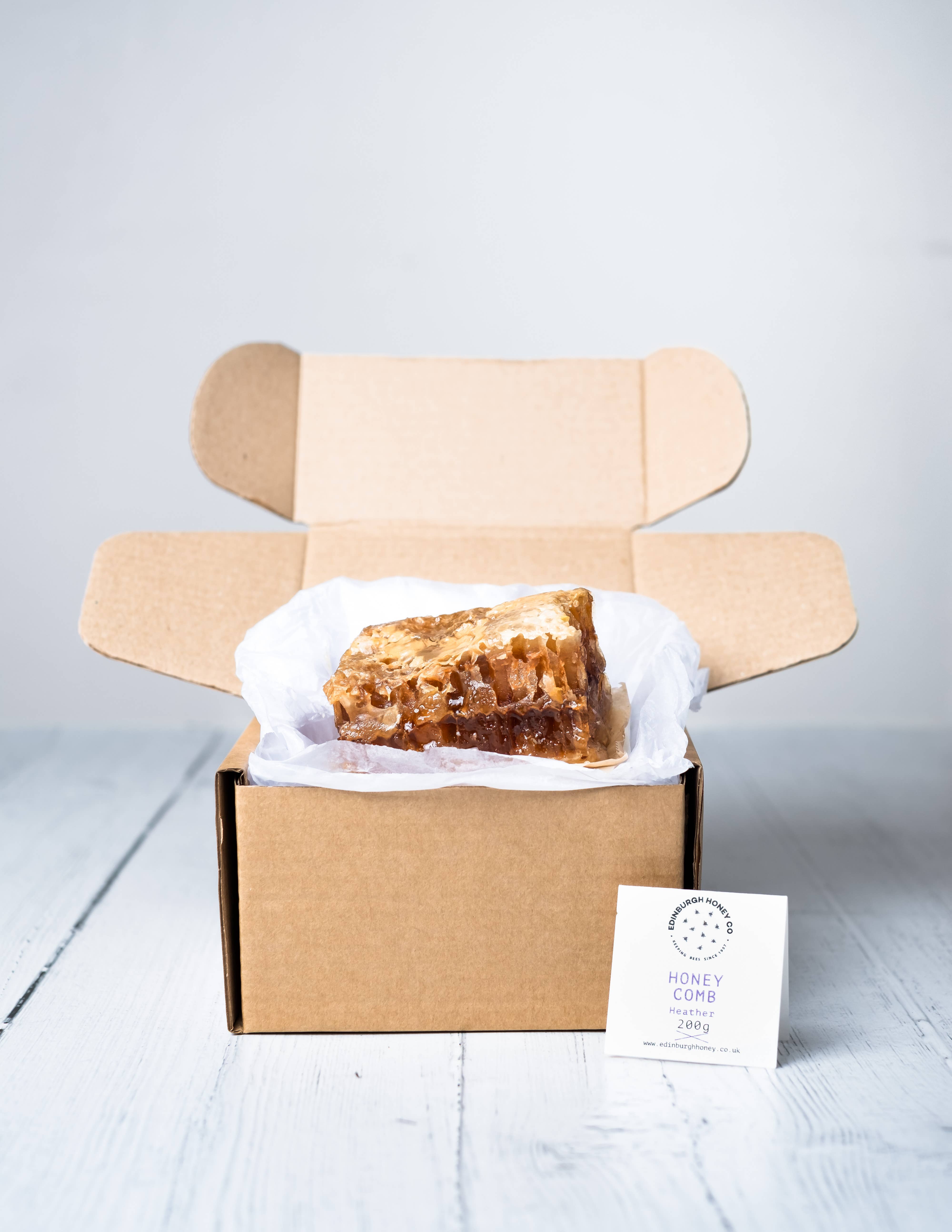 Immerse yourself in the rich flavors of Scotland with our Scottish Blossom Comb Honey, a true taste of tradition and craftsmanship. Perfect for special occasions like Father's Day, graduations, and teacher appreciation, our Scottish Blossom Comb Honey is a unique and memorable gift for him. Crafted with care by our expert beekeepers, each comb is a testament to the purity and quality of Scottish honey. Packaged in eco-friendly, plastic-free containers, our Scottish Blossom Comb Honey reflects our commitment to sustainability. Each jar is a symbol of our dedication to preserving the environment, making it a gift you can feel good about giving. Delight in the natural sweetness and floral notes of Scottish blossom honey, beautifully preserved in its comb. Whether enjoyed on its own or paired with cheese, bread, or fresh fruit, its unique texture and flavor make it a standout addition to any culinary experience. Experience the authentic taste of Scotland with our Scottish Blossom Comb
