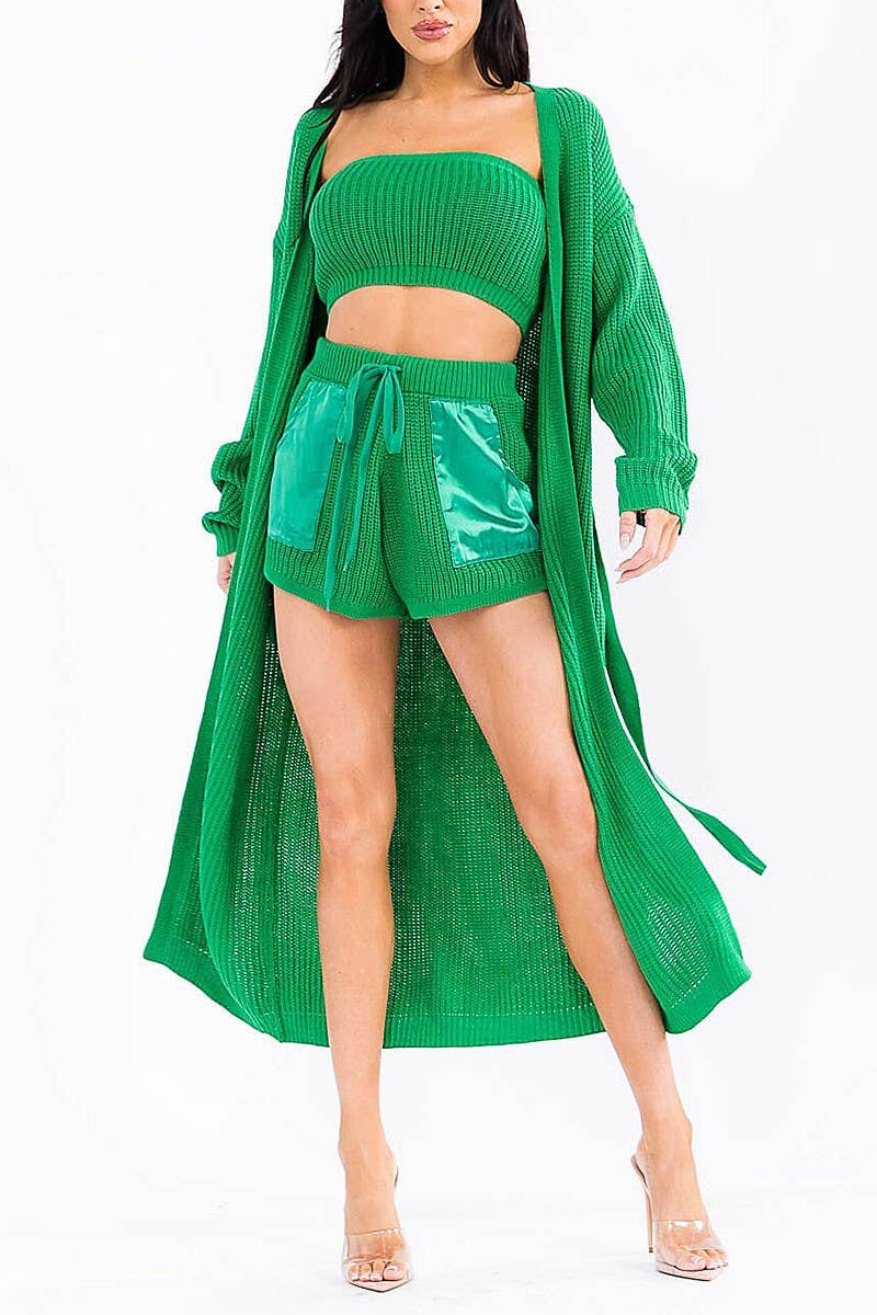 SLEEVELESS CROP TOP & MINI SHORTS SEQUINS 2PC. SET 70% Cotton 30% Polyester Lining: 100% Polyester. Hand Wash. Made in China. Model is wearing size S Top: Length: 7" Bust: 32". Short: Length: 12" Waist: 14" Inseam: 3".