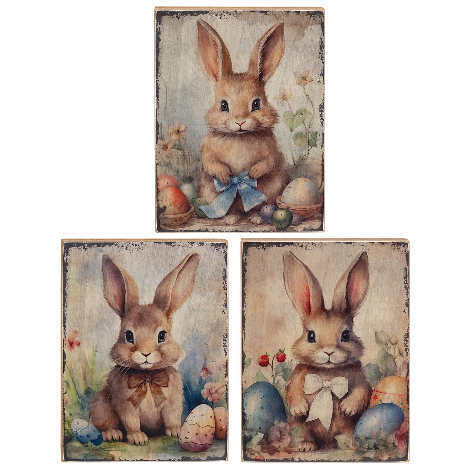 Welcome Spring Bluebird Square Block - 3 Asstd. Please note: This item features an assortment of designs which are priced individually (not as a set.) When you order the case quantity of 12, you will receive 4 of each style when available.