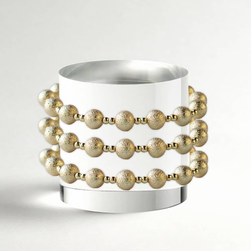 Gold Beaded Bracelets-4mm, Textured, Stretch, Long Wear