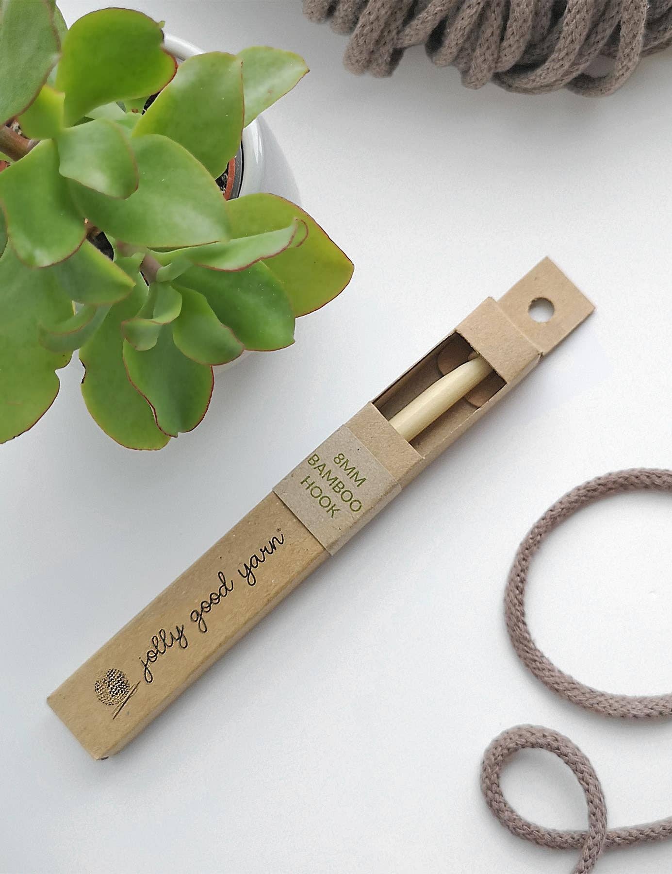 This is a high quality 8mm bamboo crochet hook. The hook's thickness is 8mm and it's 15cm in length. It's ideal for when you want to crochet with thick and chunky yarn, like the t-shirt yarn we sell! This ergonomic design helps ensure a comfortable grip whilst crocheting your project.