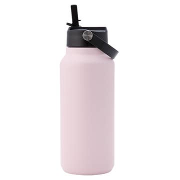 Vacuum-insulated water bottle with a durable powder coating made from high-grade stainless steel. It can be supplied with a flip lid, full steel lid and/ or silicone carry handle of choice. Comes in plastic-free FOSH packaging.