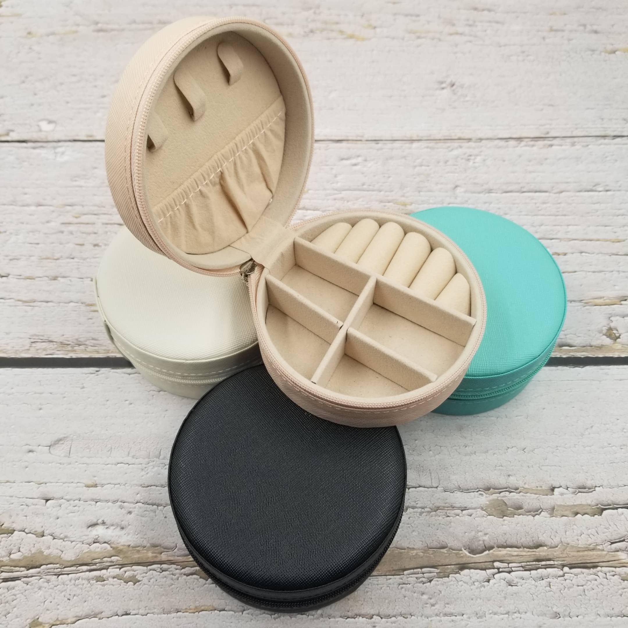 Leather Jewelry Box With Mirrorr Organizer Box Size: 3.93" *1.96" . Weight :0.22 lb . Material:Leather Color: pink ,black,green,white ,grey . Function:Place jewelry and accessories, suitable for home use and travel. Application: Women/Girls . Package Includes: 1Pair/Opp Bag .
