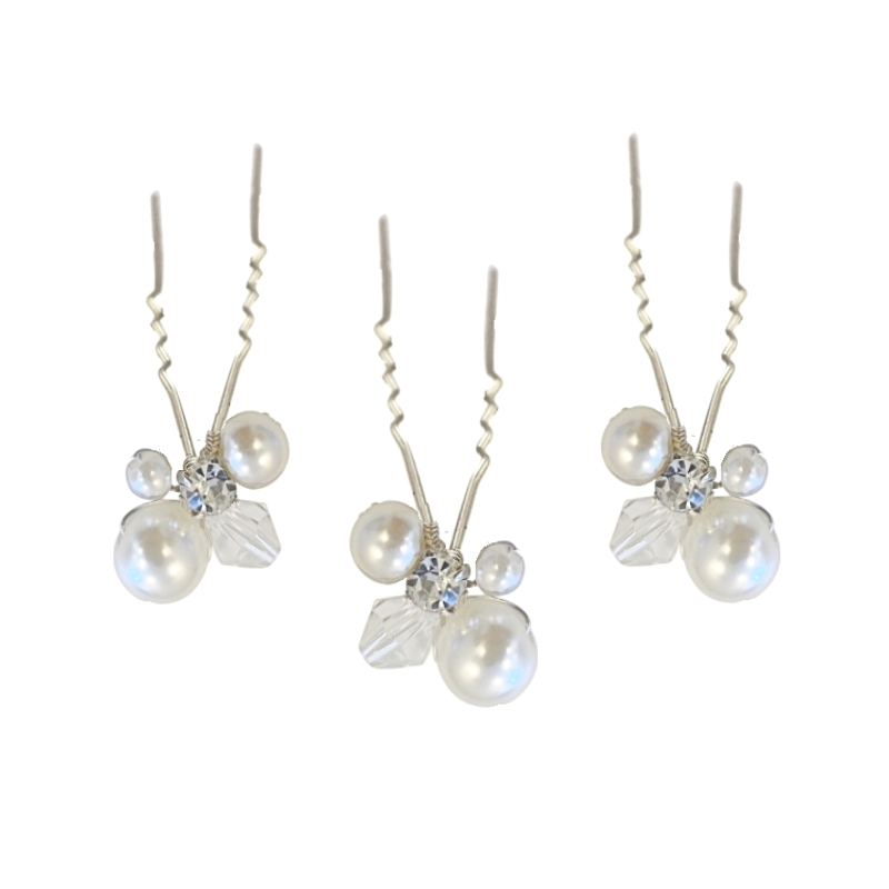 * This hair bobby pins combine freshwater pearl beads with textured metal, creating a sophisticated and timeless design. * It comes in a set of 4 bobby pins. * Each pin is carefully crafted for a polished and refined finish. * Strong bobby pin design keeps hair securely in place without slipping. * Suitable for use on straight, wavy, or curly hair, adding a touch of elegance to any style. * Perfect for various occasions such as weddings, parties, or daily wear. * Dimension: 2" * Alloy, natural freshwater pearls