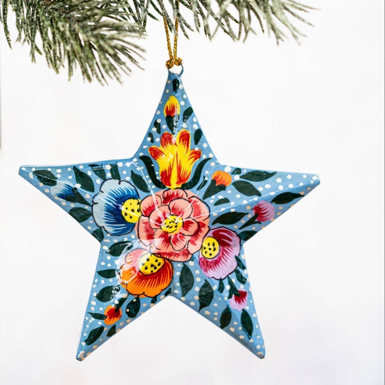 A hand painted 3D star measuring approximately 7cm by 7cm<span class="sku_wrapper"><span class="sku"><br> Paper Mache Construction <br>