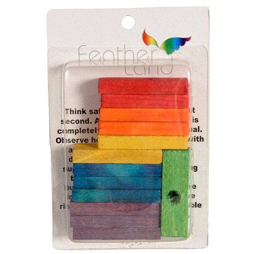 Featherland Paradise Working Lunch Skewer Toy Extender is designed for birds. • Made with steel • Made with stainless steel hardware • Designed to hang securely • Attaches easily inside enclosures
