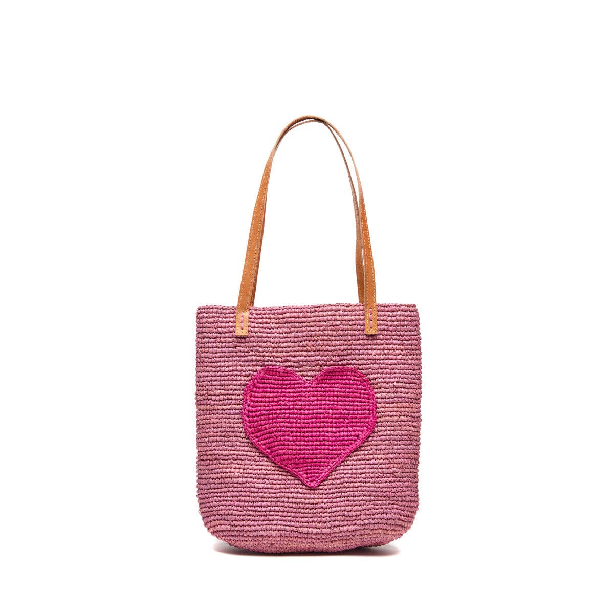 Our Petite Amelie tote features crocheted hearts in cheery colors. It has leather carry handles and a cute silhouette. Perfect for the littles for the beach and beyond. * Crocheted raffia * Inside pocket * Leather handles * 12" x 11” x 4"; 9" strap drop - Approximate dimensions, each piece is handmade