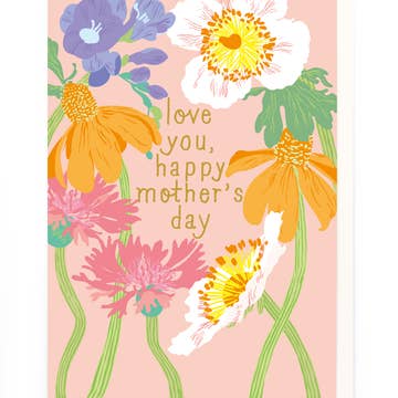 Greeting card with a blank interior. Individually wrapped with a plastic sleeve with a matching envelope. Card measures 4.25 x 5.5.