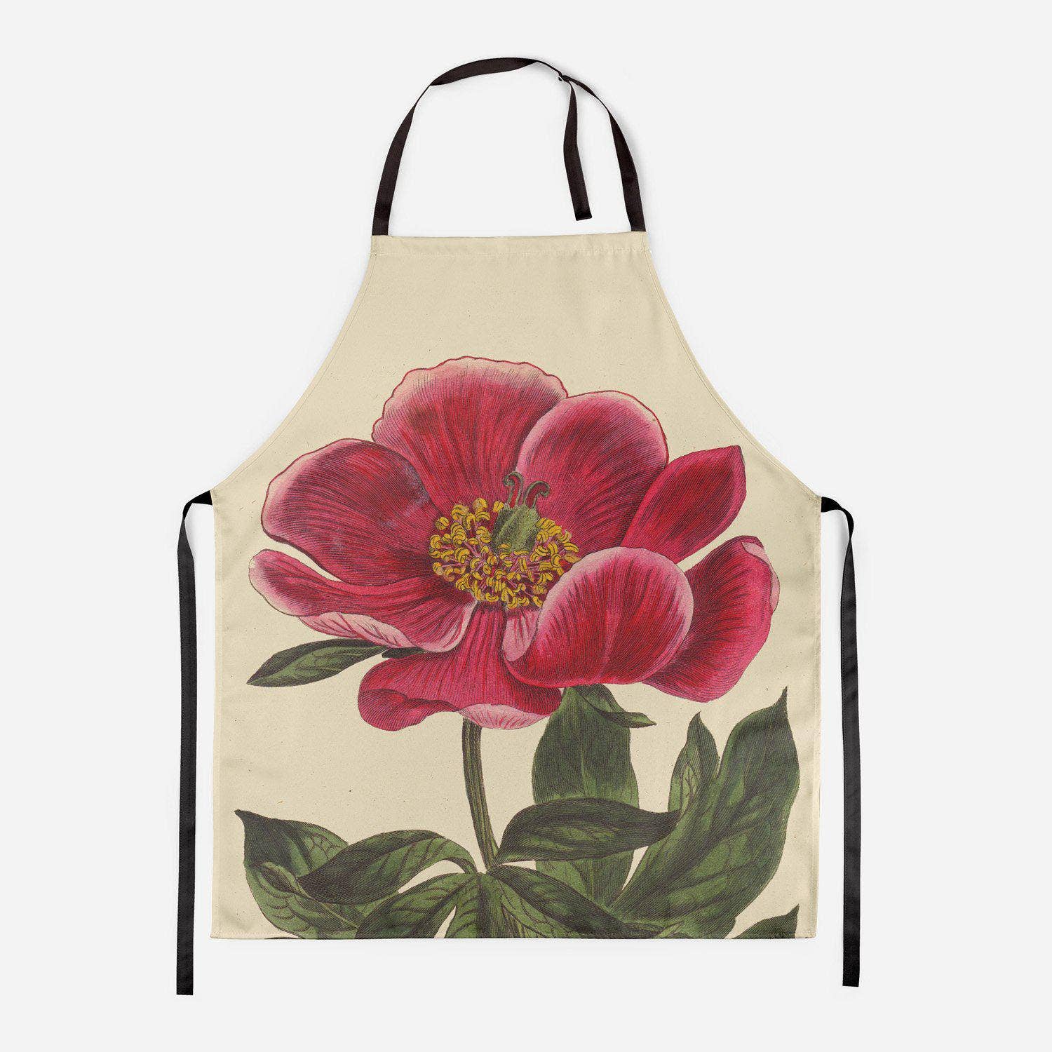 Velvety Erythrina - Botanical Apron Sumptuous Botanical inspiration comes in the form of those beautiful aprons, All of the illustrations feature original hand coloured copperplate engravings from William Curtis's Botanical Magazine ( 1790 - 1800). Our aprons are made from heavy weight cotton drill, with adjustable straps, They complete with a ' D ' ring fitting at the neck. Details: Lovingly handmade in UK Machine washable (check care label prior to washing) Our adult size apron is approx. 85cm x 61cm