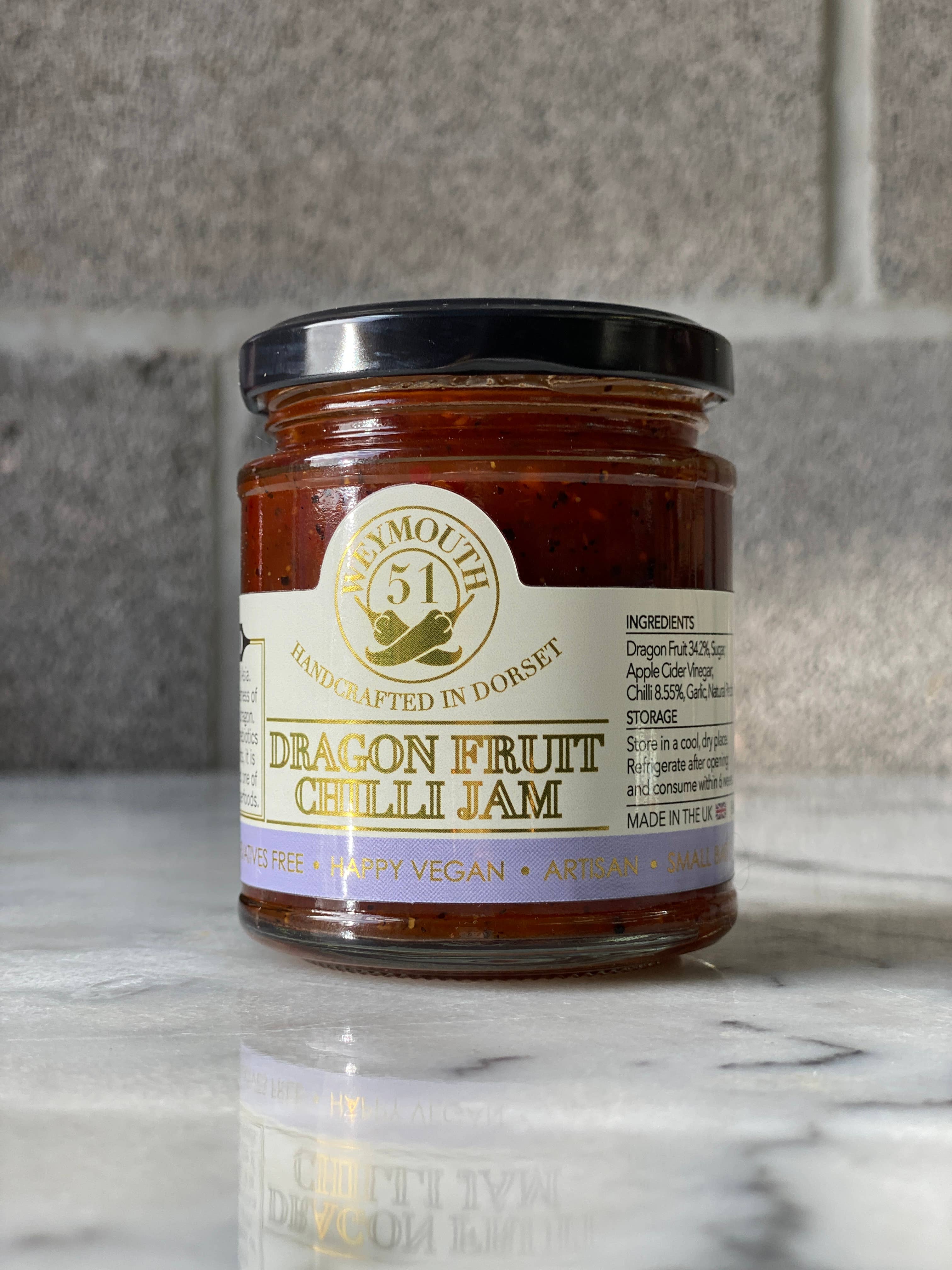 Move over oranges! Put passion in your life. Full of fibre, vitamin C and antioxidants. Naturally sweet and sour with a little chilli kick to tickle your taste buds. Works well paired with cheese, cold meats and any savoury items, or simply on toast. ─ Ingredients: Passion Fruit 34.2%, Sugar, Organic Apple Cider Vinegar, Chilli 8.55%, Garlic, Natural Pectin.