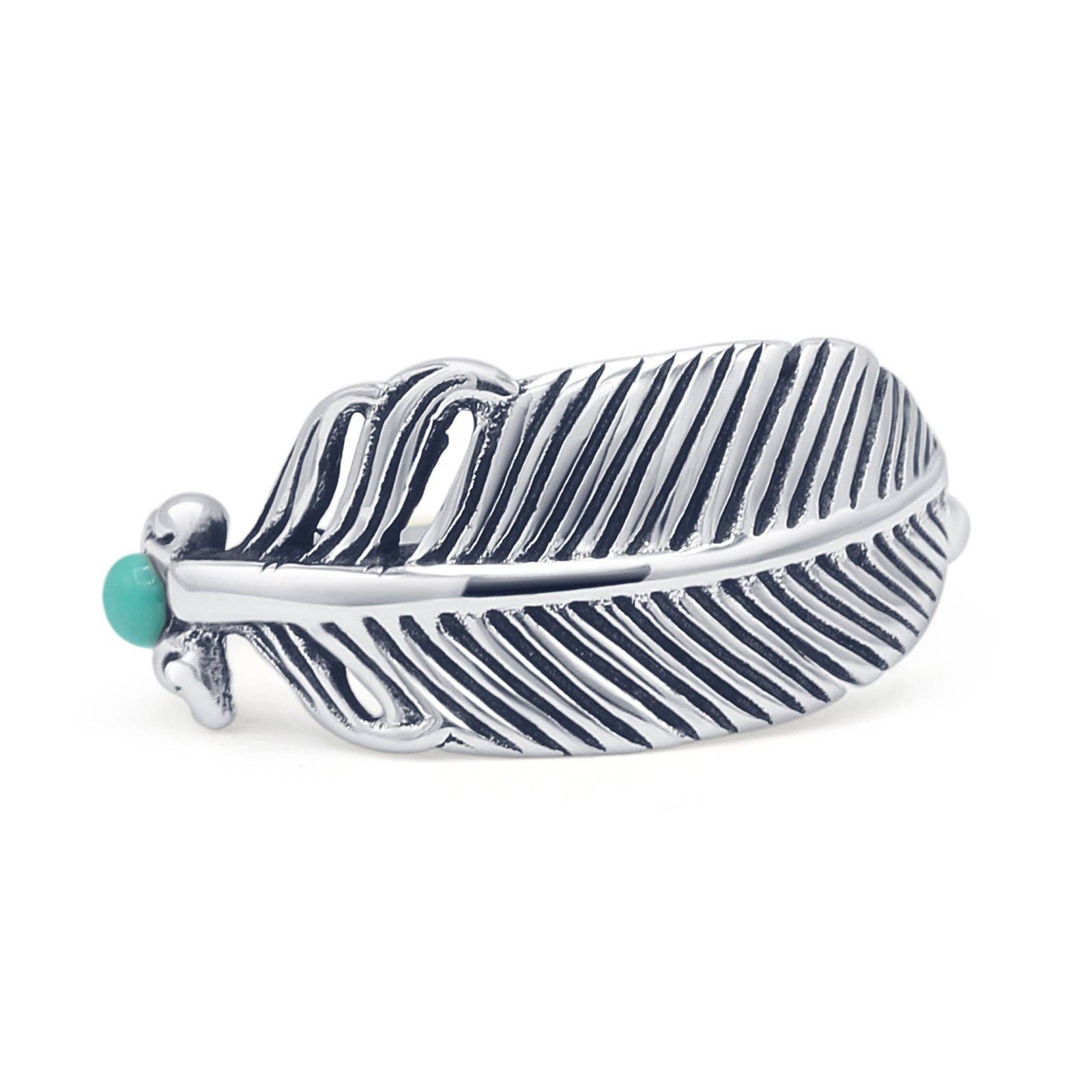 Oxidized Feather Ring 925 Sterling Silver
