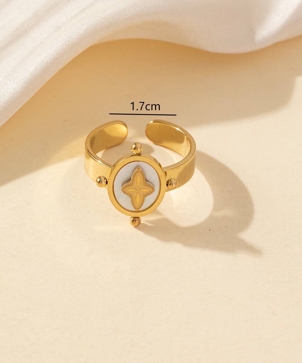 Stainless Steel Ring - Adjustable Size Discover everyday elegance with our stainless steel ring. Its adjustable size ensures a perfect fit. This ring combines durability, style and comfort. Its versatile design fits any occasion, adding a touch of glamour to your outfit. Enjoy its carefree port, even in contact with water. To maintain its shine, clean it gently with a soft cloth. (Note: Color variations may occur due to lighting and monitor differences.) 3.5 cm X 3 cm