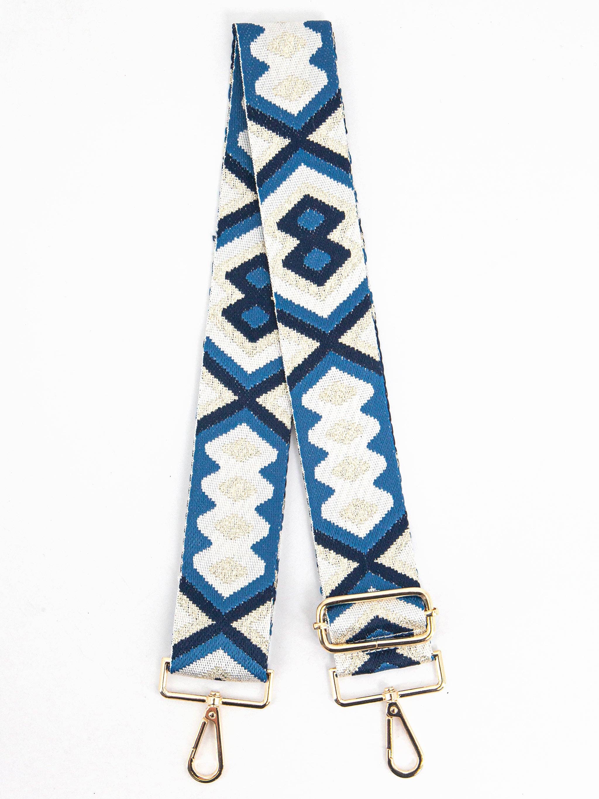 💝 PERFECT FOR Gift for her, Christmas gift, bag accessory 👜 THIS PIECE An adjustable woven bag strap crafted from a shimmering metallic yarn. Showcasing an ornate jacquard design and gold hardware, this bag strap can be attached to any crossbody or shoulder bag. FIT Gold hardware Adjustable Clip on attachments SIZE Length 120cm - 145cm Width 3.8cm 🧵 FABRIC Crafted from strong woven metallic nylon for durability. 100% Nylon Wipe clean Air dry only Made in China