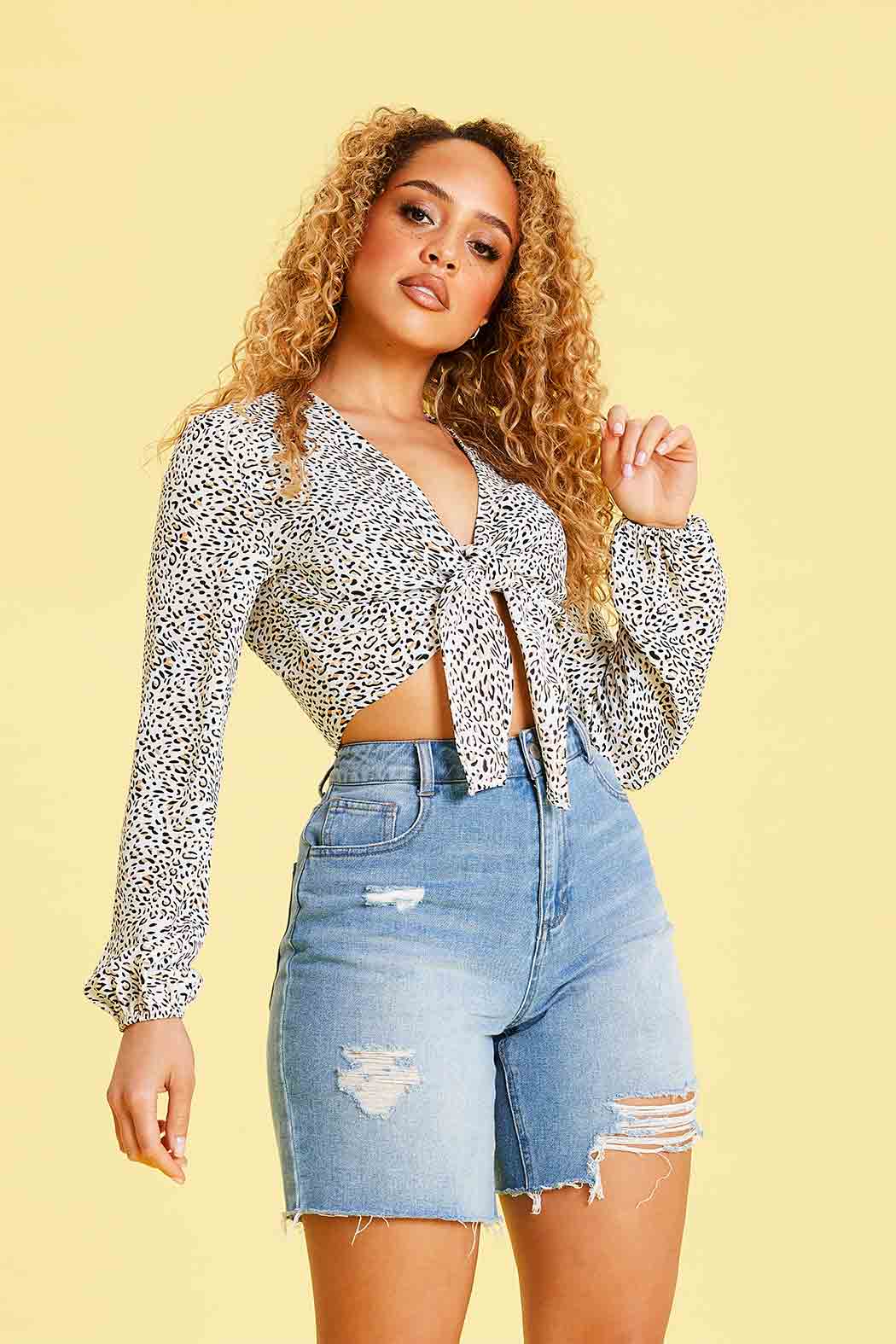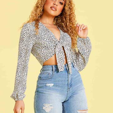 Like a t-shirt, but way cuter. Add some jazz to your wardrobe with this year round staple. Printed floral pleated knit tee with self-tie bottom. Pleated detail Ties at waist Pullover styling 100% Polyester