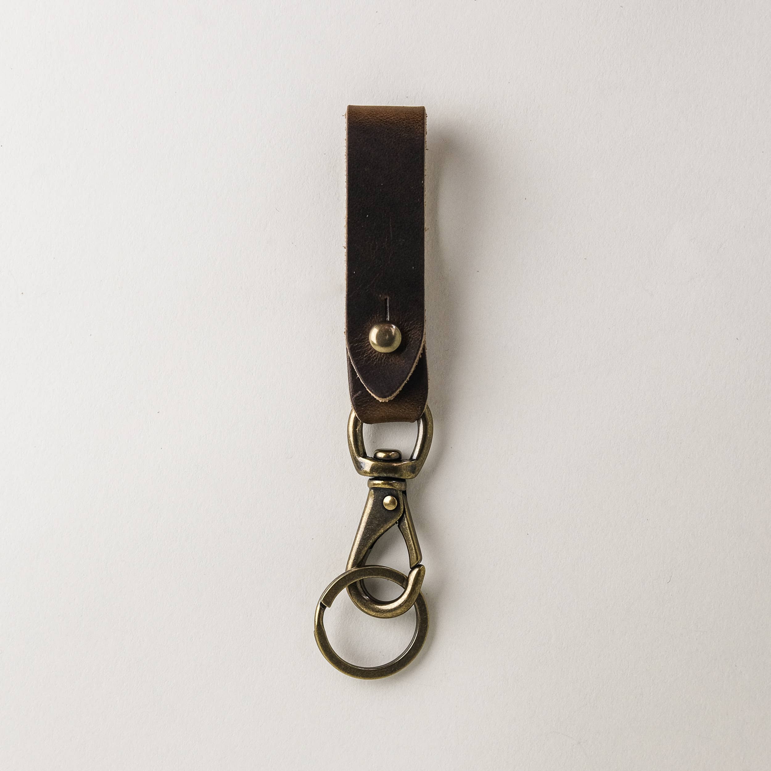 This handsome leather key loop makes a wonderful gift or addition to your everyday carry collection. The elegant leather will only get better with time as it ages to a beautiful patina. Our quality leather key fobs are handmade in NC from American tanned, full-grain leather. Overall length: 4.25 inches with a 1.25" split ring and 3.25" leather loop. Dark brown.