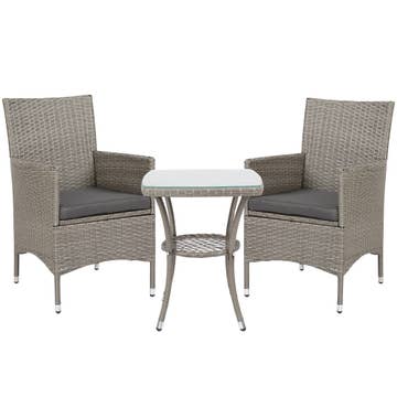 Upgrade Your Outdoor Space with This 3-Piece Patio Set! Designed for comfort, style, and durability, this indoor & outdoor conversation set features two ergonomic chairs and a sleek side table, perfect for relaxing, reading, or enjoying a cup of coffee. ✔ Stylish & Modern Design – Elegant Acapulco-style chairs add a trendy touch to any outdoor space. ✔ Durable & Weather-Resistant – Made with PE rattan & powder-coated steel for long-lasting use. ✔ Sturdy Glass Table – Perfect for drinks, snacks, or décor, with a strong weight capacity. ✔ Lightweight & Easy Assembly – Simple setup with included instructions. Product Specifications: Color: Ink Black Material: PE (Polyethylene) Rattan, Powder-Coated Steel Frame Table Size: 19.7" Dia. x 17.7" H (50 x 45 cm) Chair Size: 26.8" L x 29.1" W x 30.7" H Total Weight: 22.7 lb (10.3 kg) Max Chair Load Capacity: 286 lb (130 kg) Max Table Load Capacity: 132 lb (60 kg) Perfect for modern outdoor living and sophistication to your space!