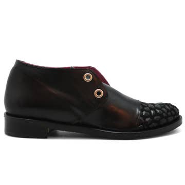 Black leather boots with black elastics on the sides, genuine leather, fluorescent rubber sole, height 5.
