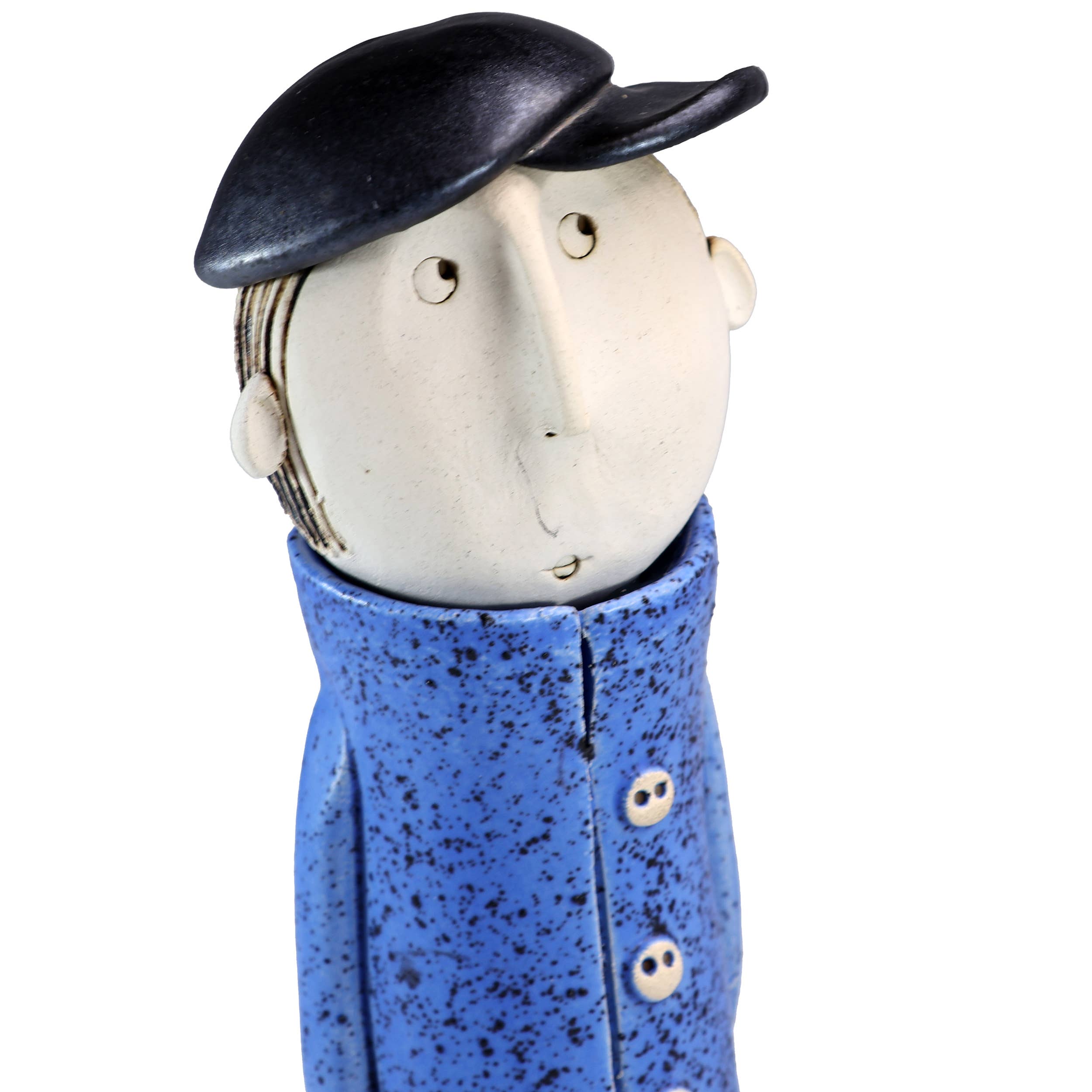 Introducing our distinguished "Man in Great Coat with Beard" ceramic figurine, a timeless addition to your decor collection. Handcrafted with precision using premium ceramic and sturdy iron legs, this figurine exudes sophistication and charm. With his classic great coat and stylish beard, this gentleman figurine adds a touch of refinement to any space. The intricate details and expert craftsmanship make him a standout piece that commands attention and admiration. Available in a range of captivating colors, you can choose the perfect shade to complement your decor or create a striking focal point. Whether displayed on a mantel, shelf, or accent table, this figurine brings character and elegance to your home. The durable iron legs provide stability, ensuring that the figurine stands securely wherever you place it.