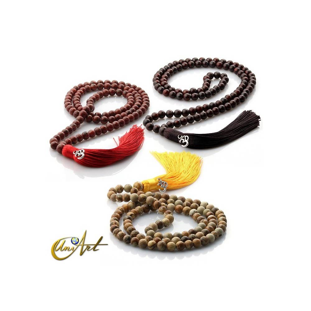 Tibetan bracelet model Japa Mala. The Tibetan bracelet, like the Tibetan Malas, aids in meditation and the chanting of mantras. This bracelet contains 21 beads of 8mm in addition to the central bead and can be used as a small japa mala. The coated elastic and the space between the beads make it easy to pass the beads. Measurements of the Tibetan bracelet: Elastic. Average weight: 16 gr. Bead size: 8 mm. Number of beads: 21 +1 central. Available in black agate, colored agate, and carnelian.