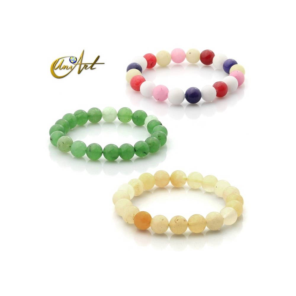 The bracelets are very pretty, the minerals could be improved since in the same bag there are very small and other large minerals... I would have liked them to all be more or less the same size.