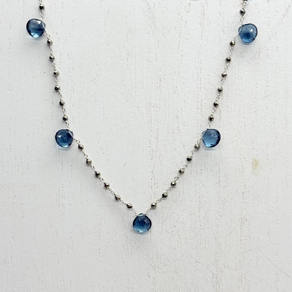 Our Waterfall Necklace is a delicate Spinel on Pyrite and Sterling bead chain. 16"-18" in length Metal-Sterling Silver Stone -10mm
