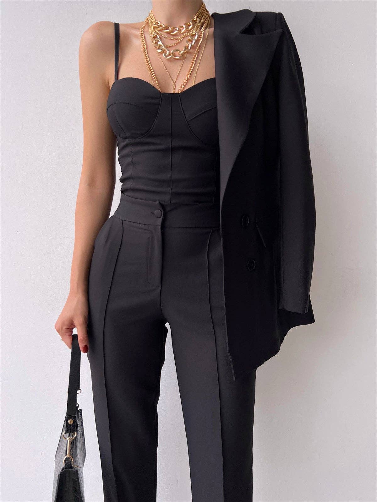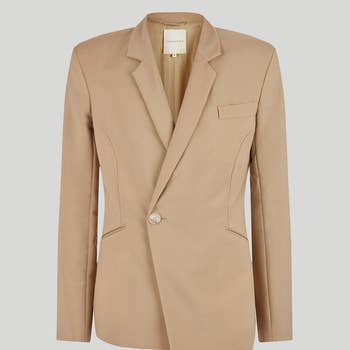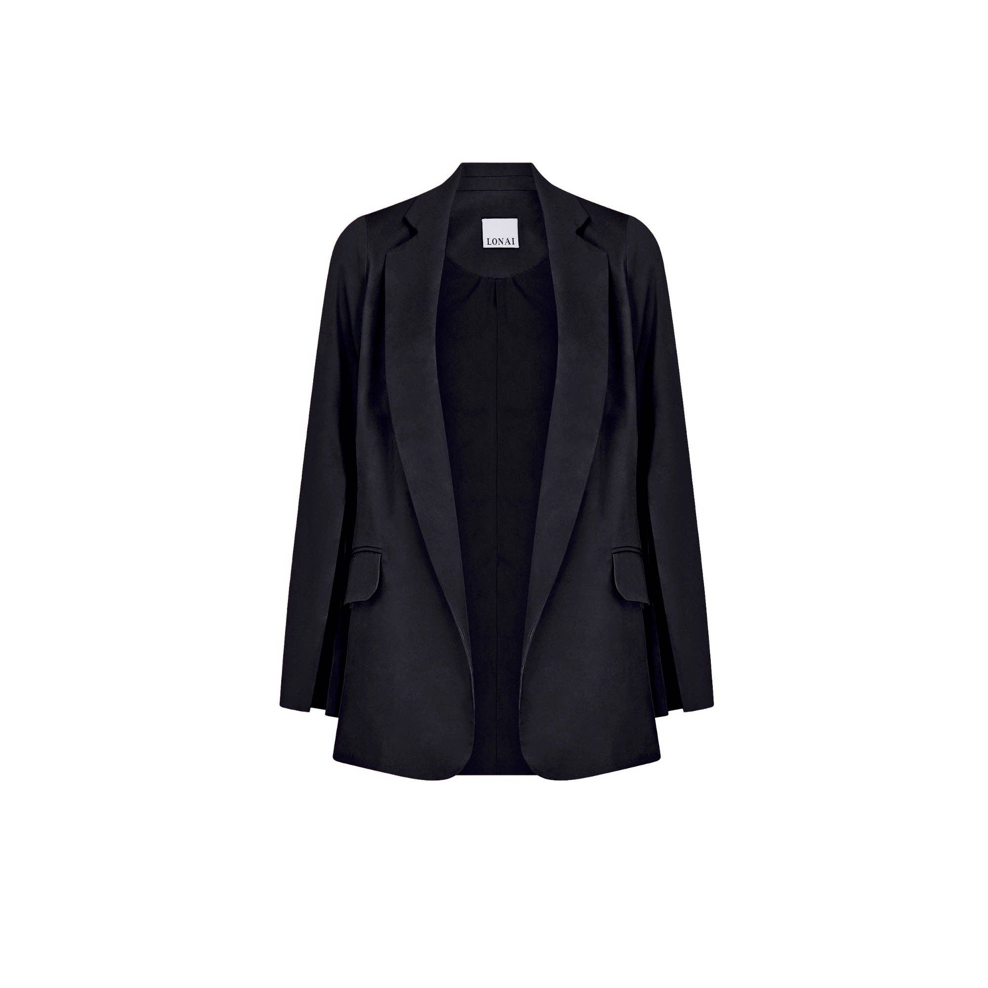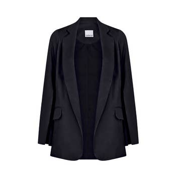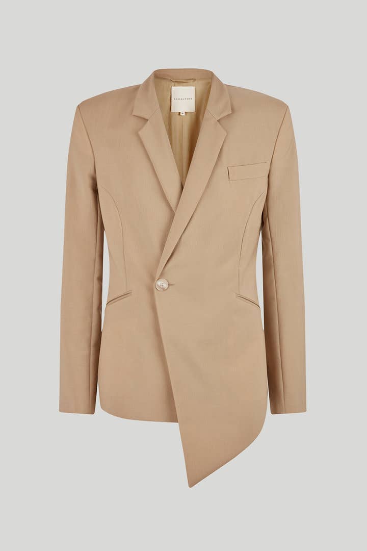 Tailoring meets modern femininity in this effortlessly chic blazer. Crafted from 100% pure white silk, it is understated sophistication at it's best. Easily adapted for day or night, this softly tailored blazer has a removable decolletage accessory. Simply snap the triangle in place for a modest office style, or remove it to fully appreciate the deep plunging neckline. Perfectly tailored with notched lapels and split handcuffs, this is a classic piece. Glamorous trousers will complete your evening look.