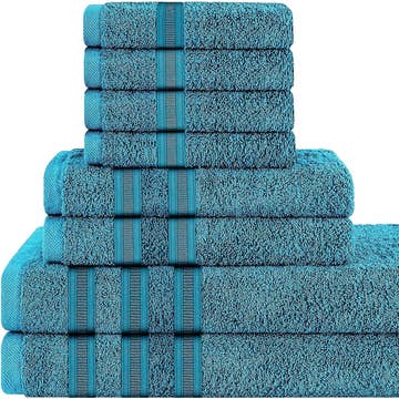 3-Piece Towel Set 100% Cotton, 610 grams Unique Mud-cloth-inspired Design Soft, plush, hotel-quality towel sets, featuring: A large bath towel. Hand towel. Face towel.