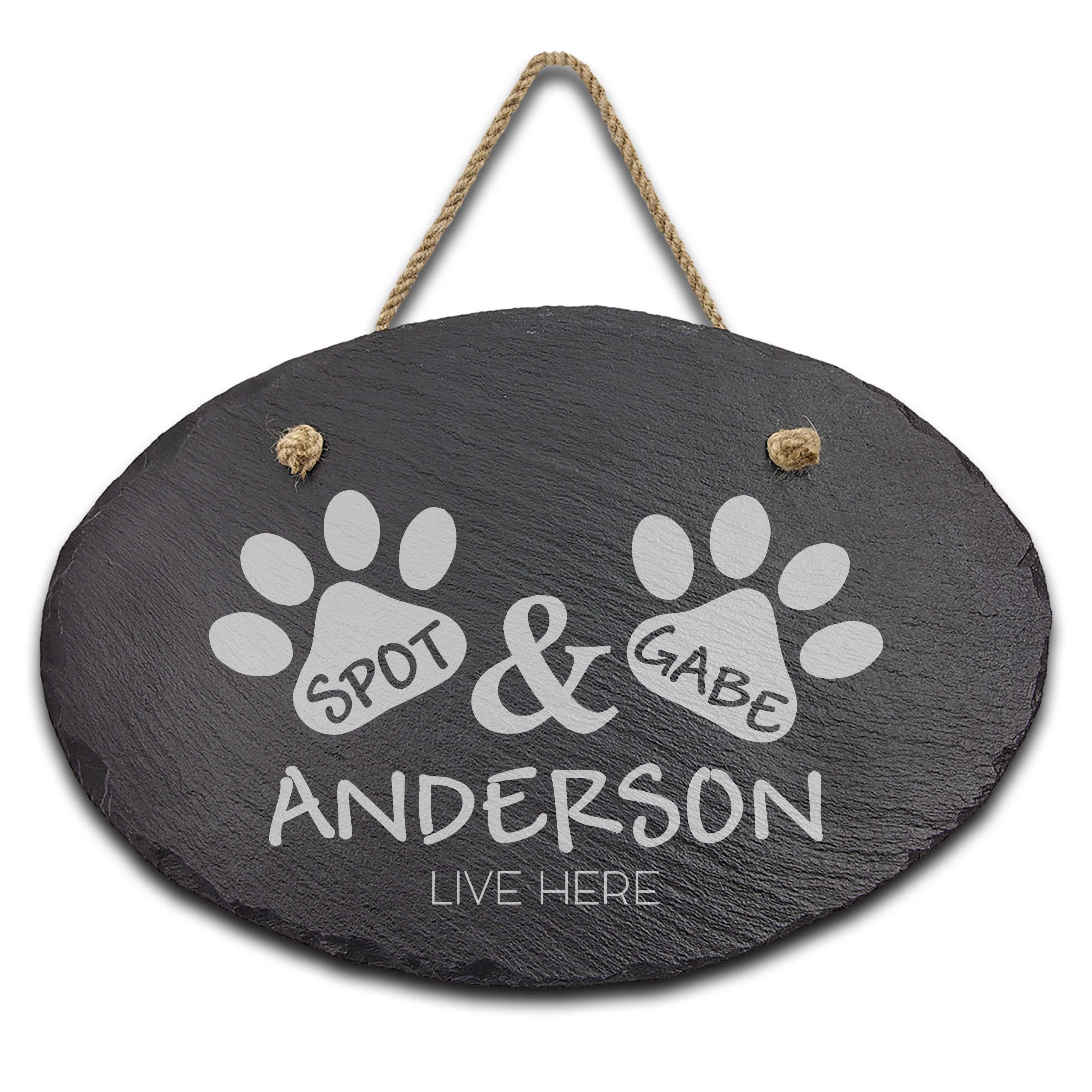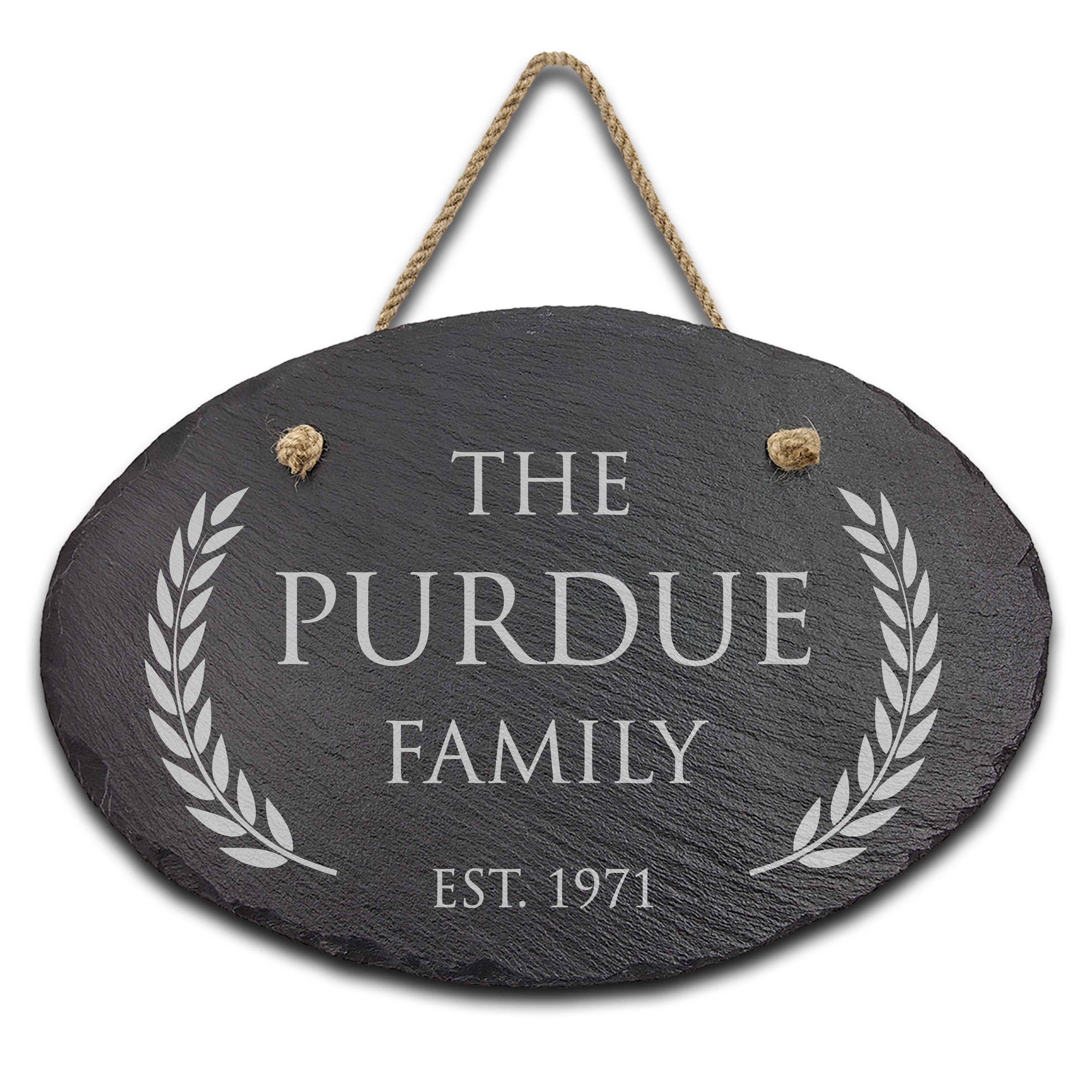 Our personalized engraved oval slate signs will add a beautiful and unique touch to your front yard or garden. Our custom slate welcome signs are engraved and are made to last. Each oval engraved slate address sign includes thick jute twine for your hanging need. ⚙SPECIFICATIONS 11.75″ in. x 7.75″ in. x 1/4″ in. Comes with an unattached string for hanging. Made with actual stone with chipped edges